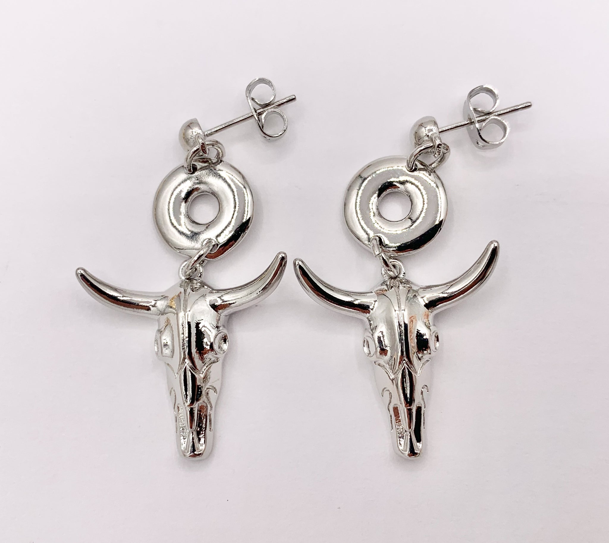 Long Horn Steer Head Dangle Earrings Stud in 18K Gold or Silver Plated Copper