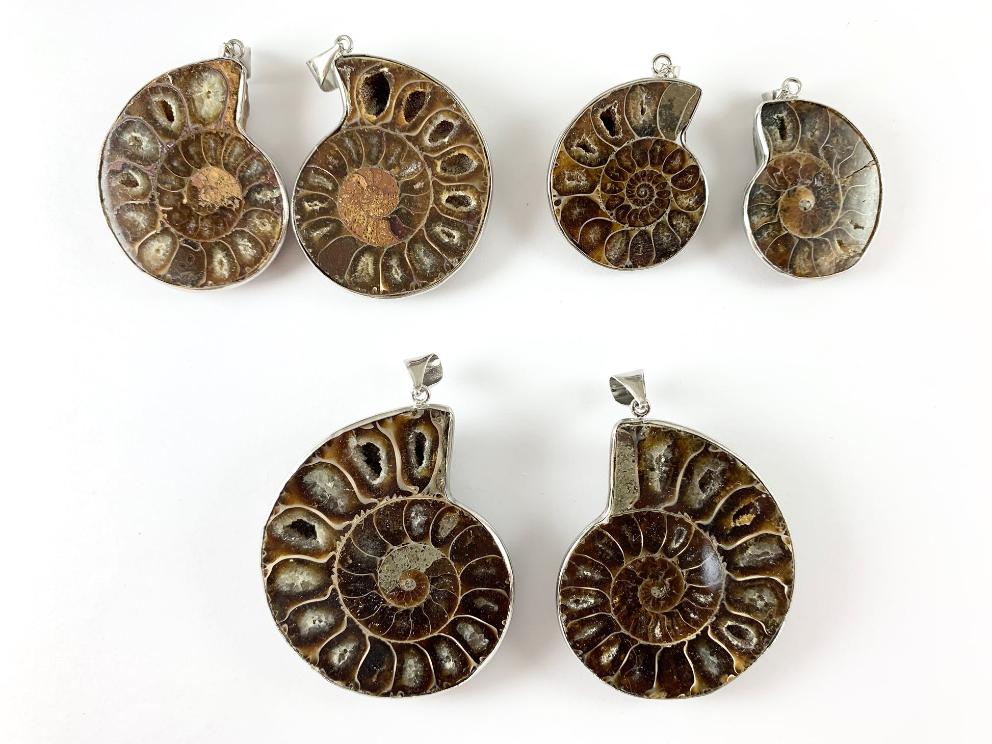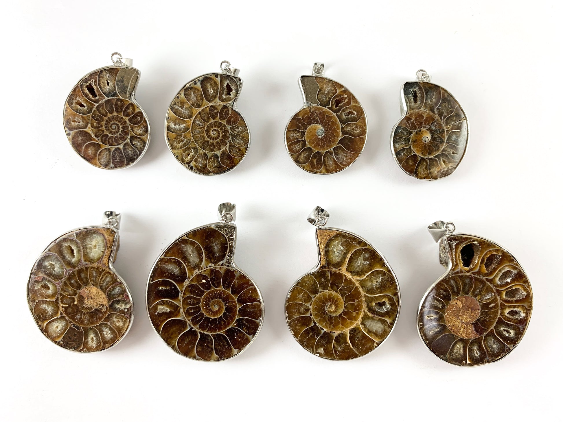 1 colgante único de fósil de amonita natural antiguo hermoso con ribete plateado