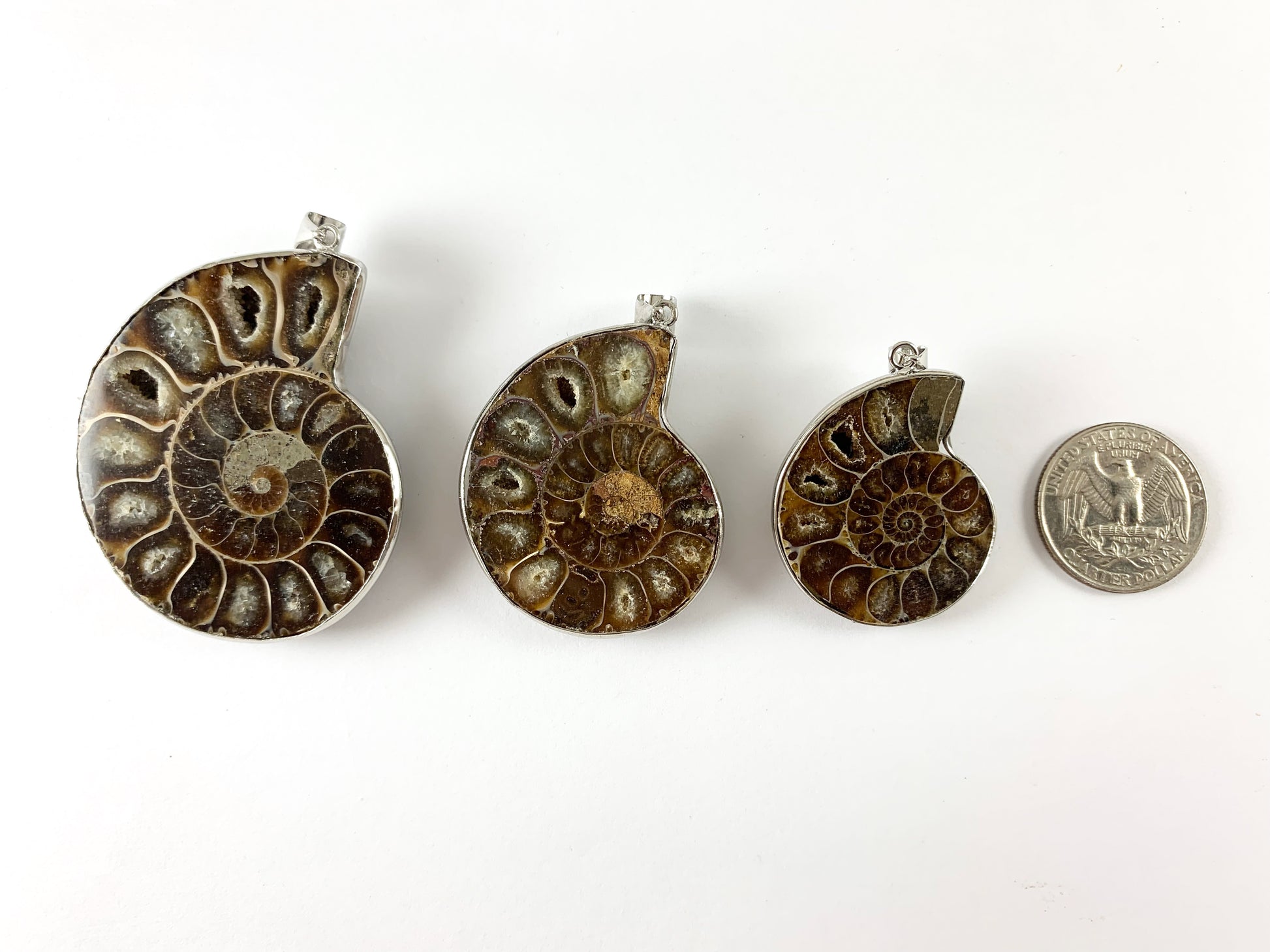 Debido a que estos increíbles fósiles de amonita son cuentas naturales, tenga en cuenta que cada pieza puede mostrar ligeras variaciones en tamaño, color y patrón.