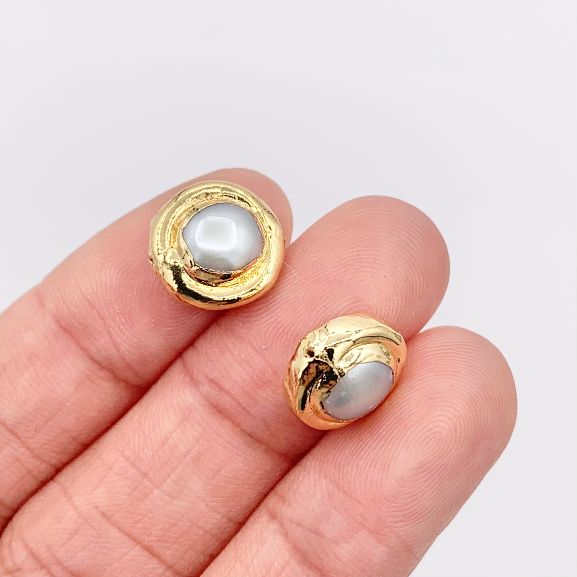 10-11mm Gold Trim Freshwater Pearl Coin Spacer Beads in 18K Gold Plated Copper 10 PCS