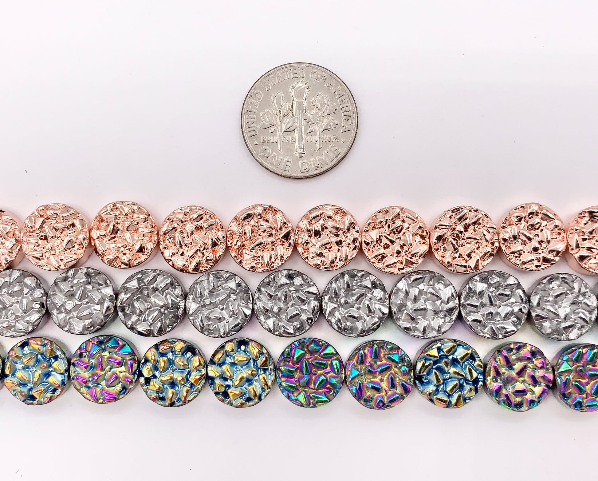 10mm Hematite Hammered Coin Beads Jewelry Making Around 15"-16" Price for 1 Strand