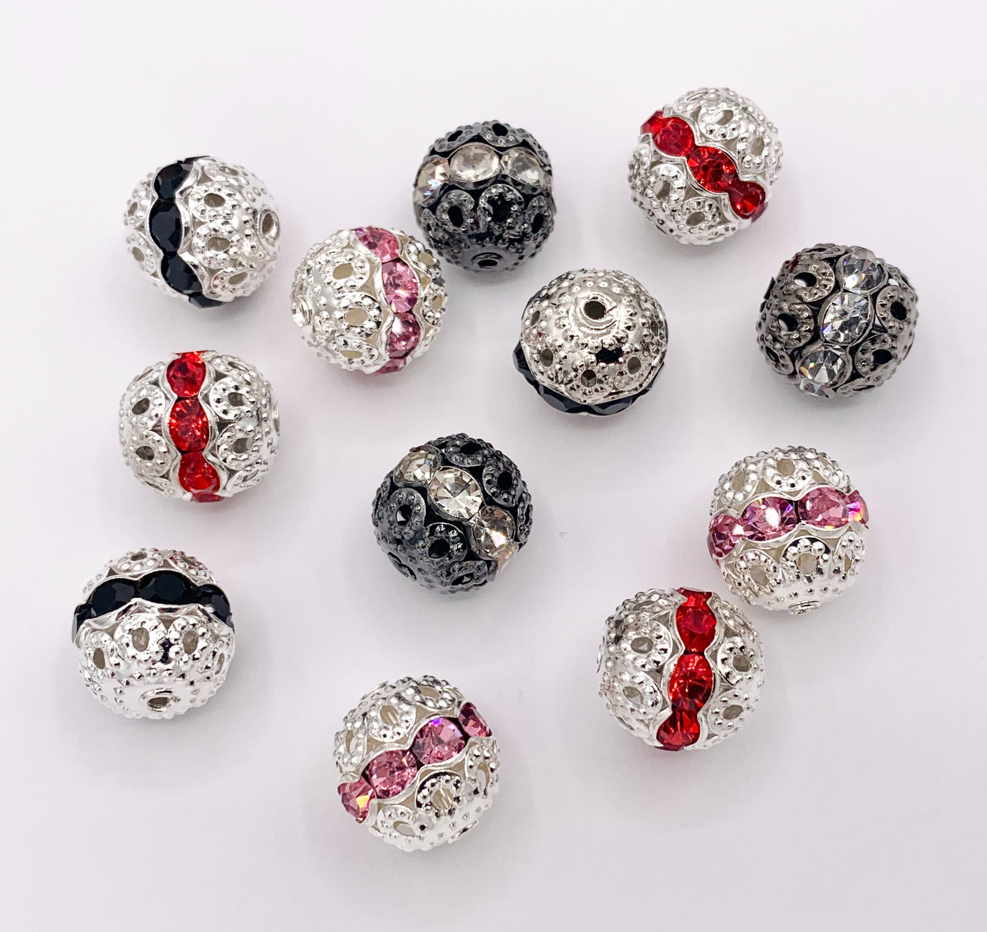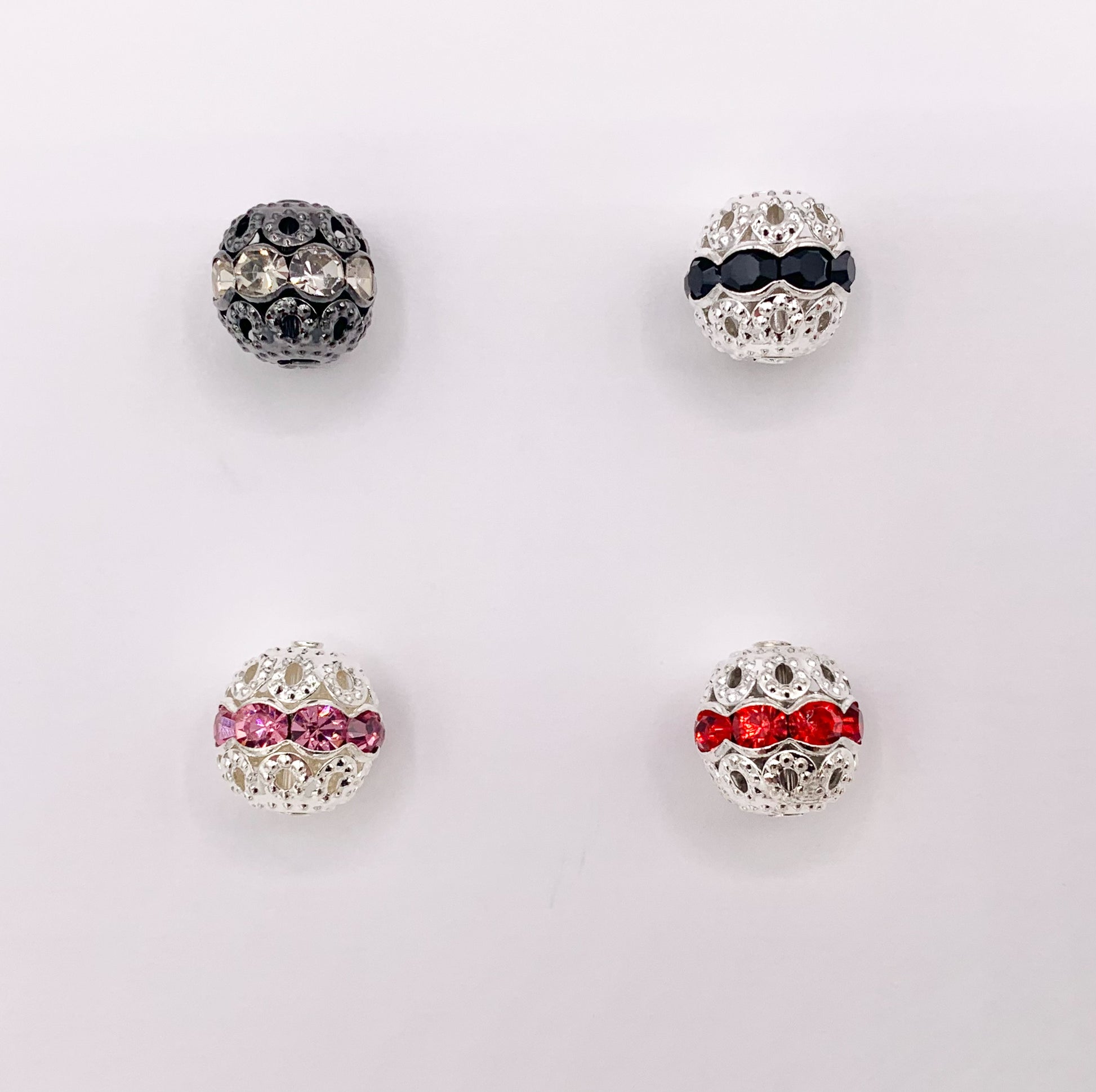11.5-12mm Gunmetal & Silver Filigree Round Spacers with Crystal Beads | Available in 4 Colors 10 PCS