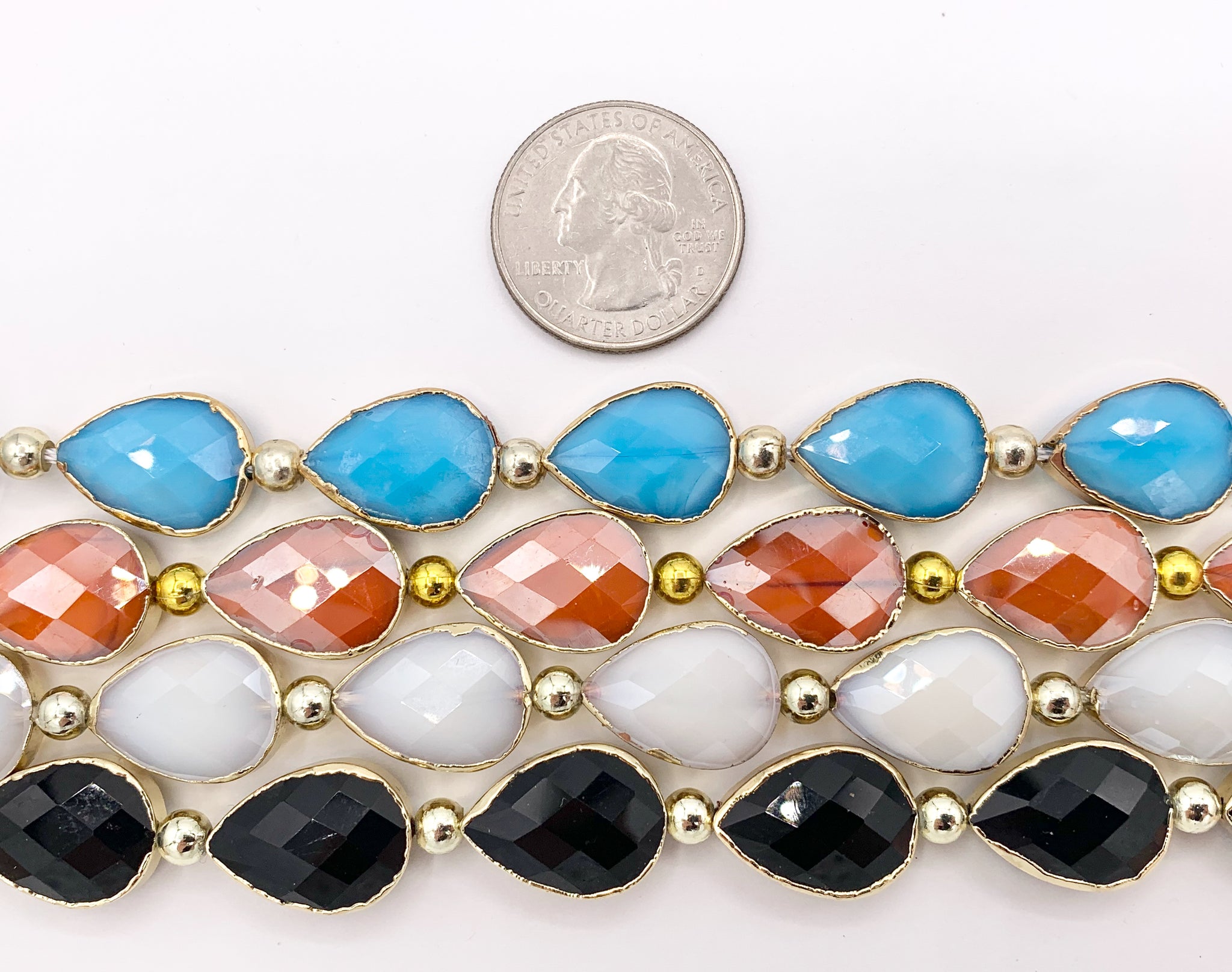 13x18mm Gold Trimmed Faceted Shiny Dyed Glass Teardrop Crystal Strands Around 8"