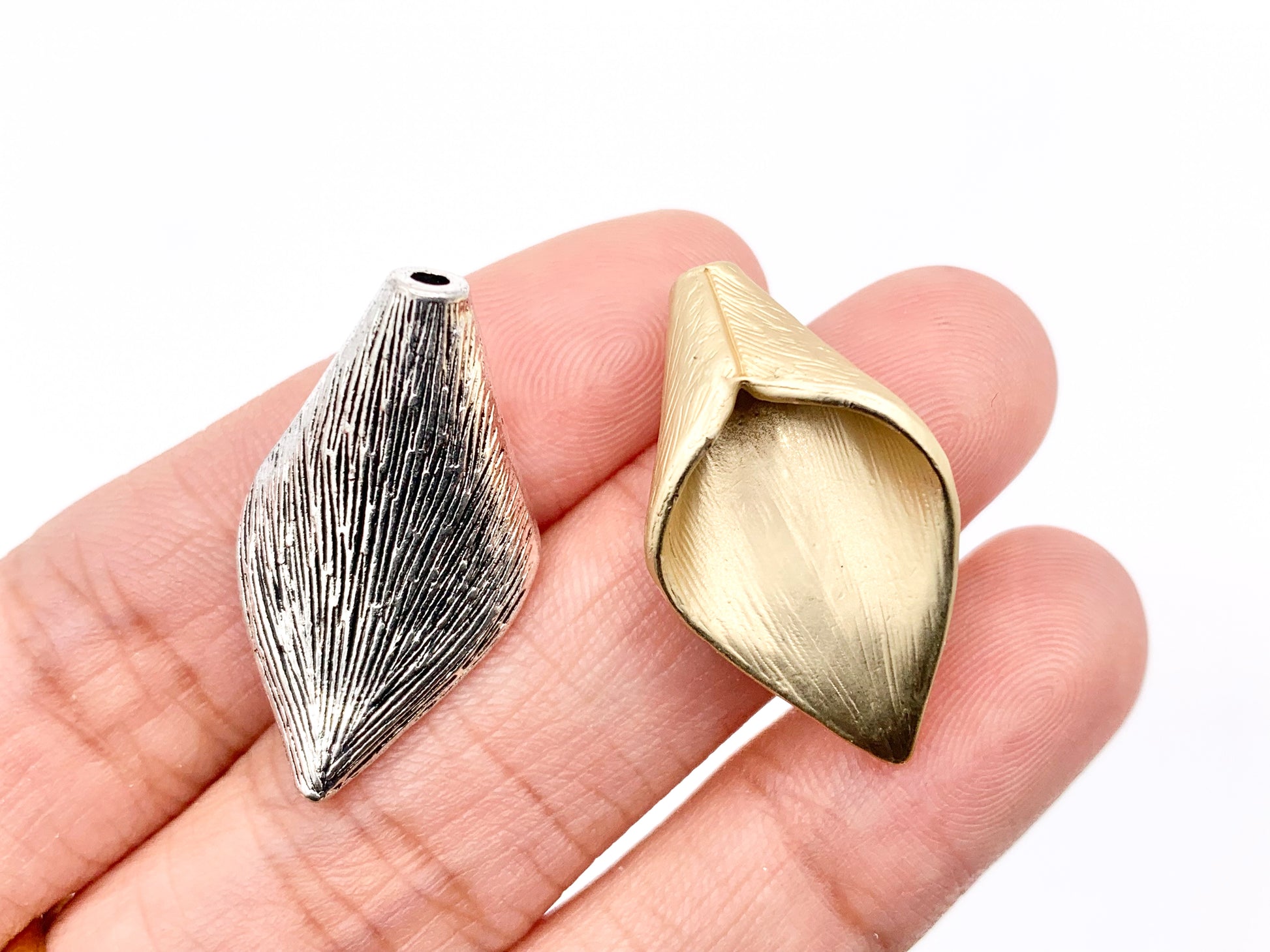 15x26mm Pewter Leaf Shape Beads Borla Cap Bead Cap Pedido a granel en oro mate, oro, plata, latón y bronce