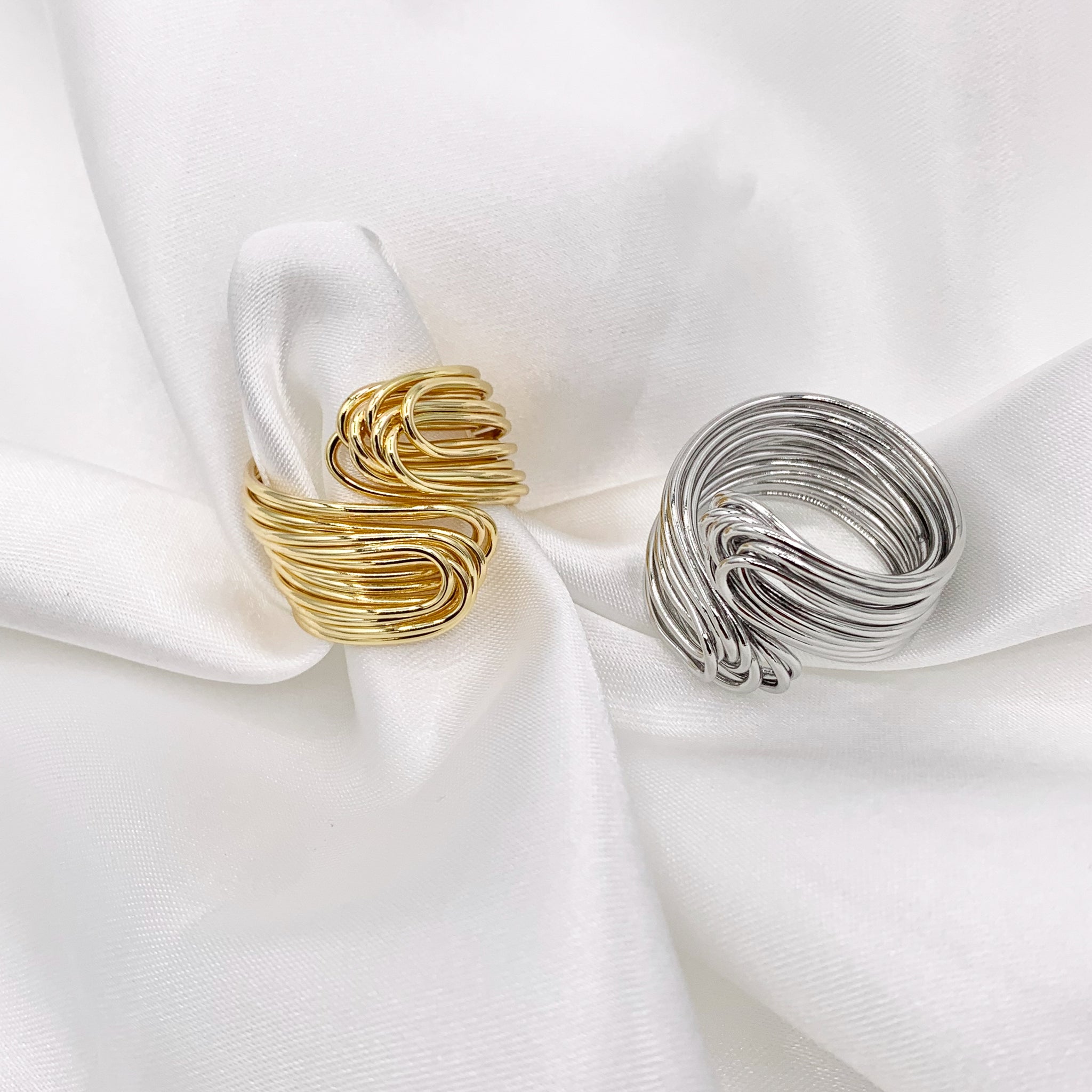 18K Gold and Silver Plated Plain Wire Wrapped Bypass Adjustable Ring 5 PCS
