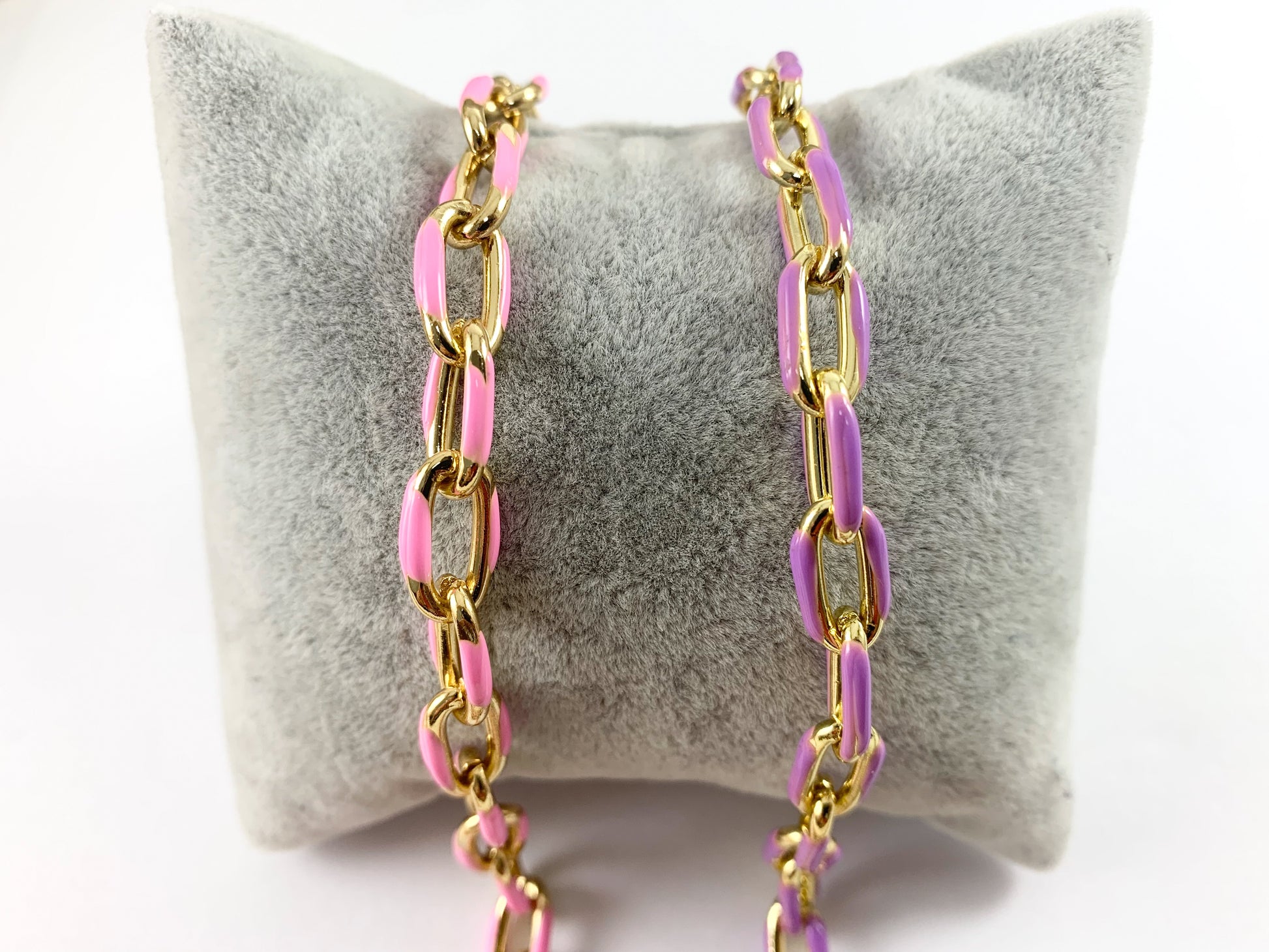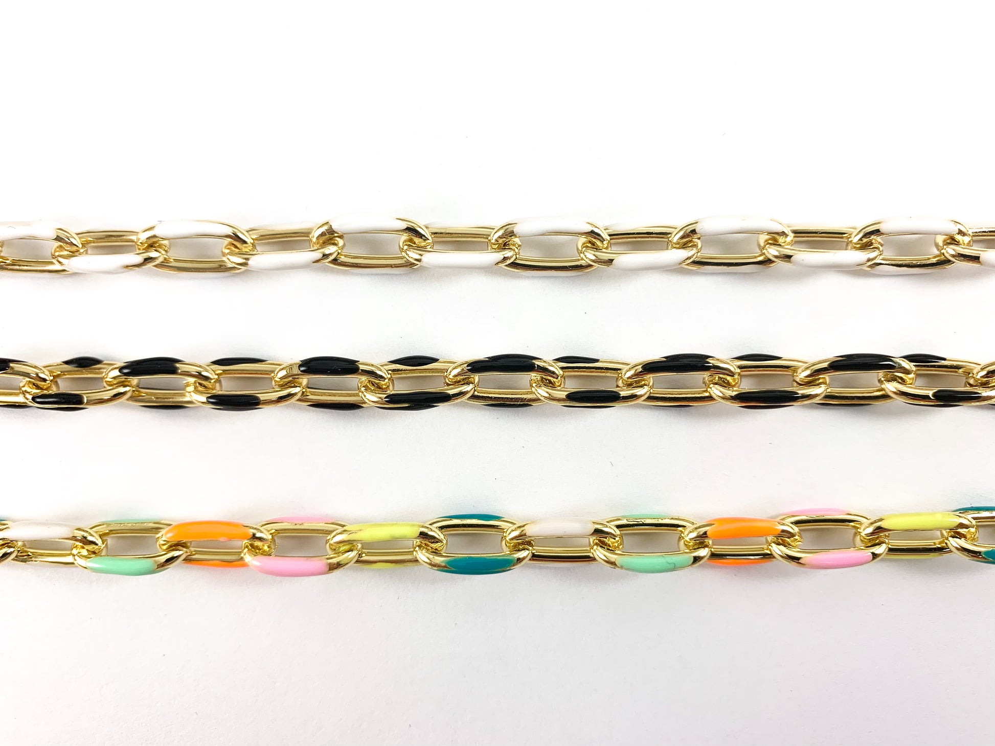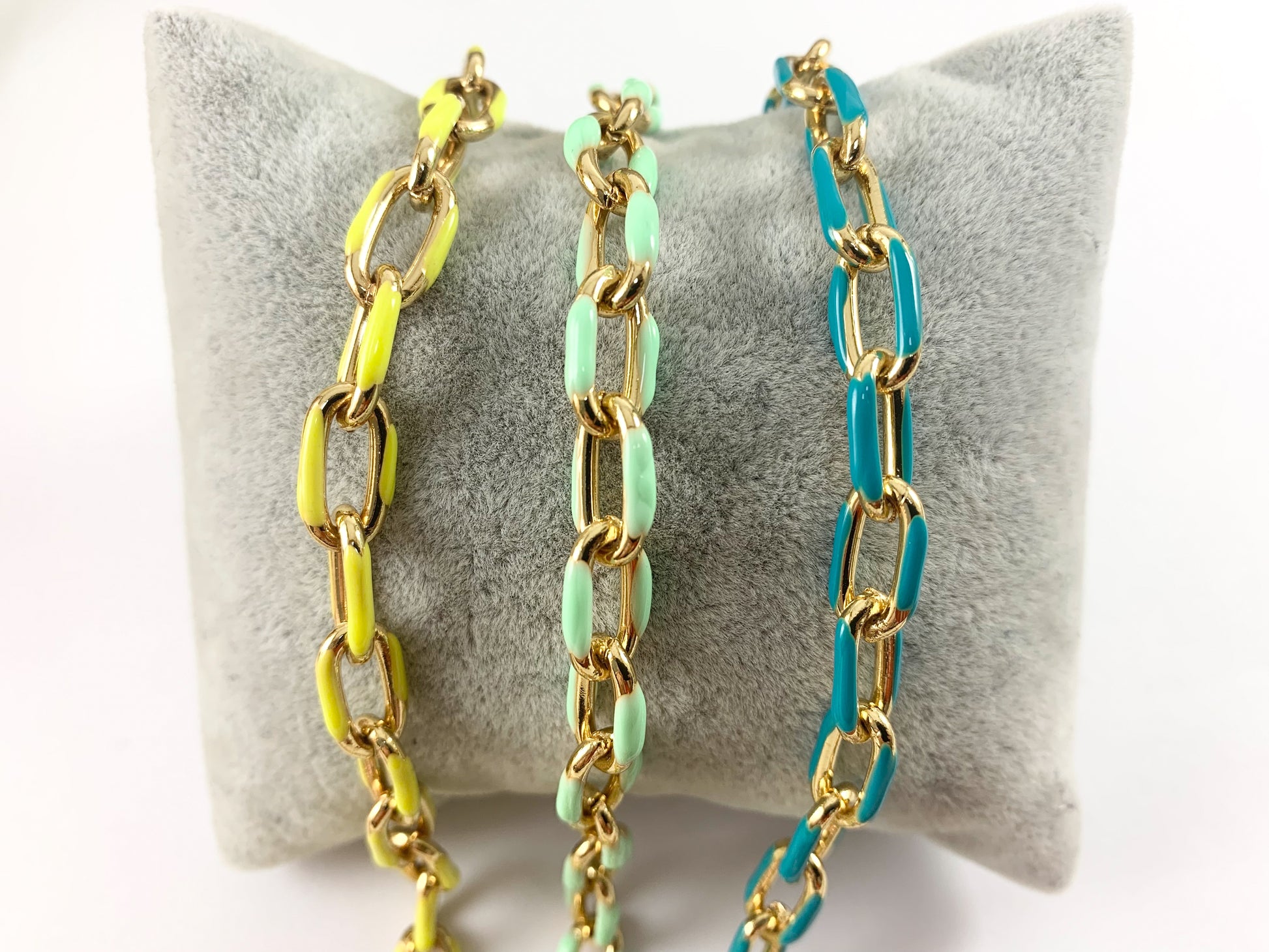 Cadena de eslabones ovalados coloridos y gruesos de cobre chapado en oro de 18 quilates y esmalte, fabricación/diseños de joyas de verano