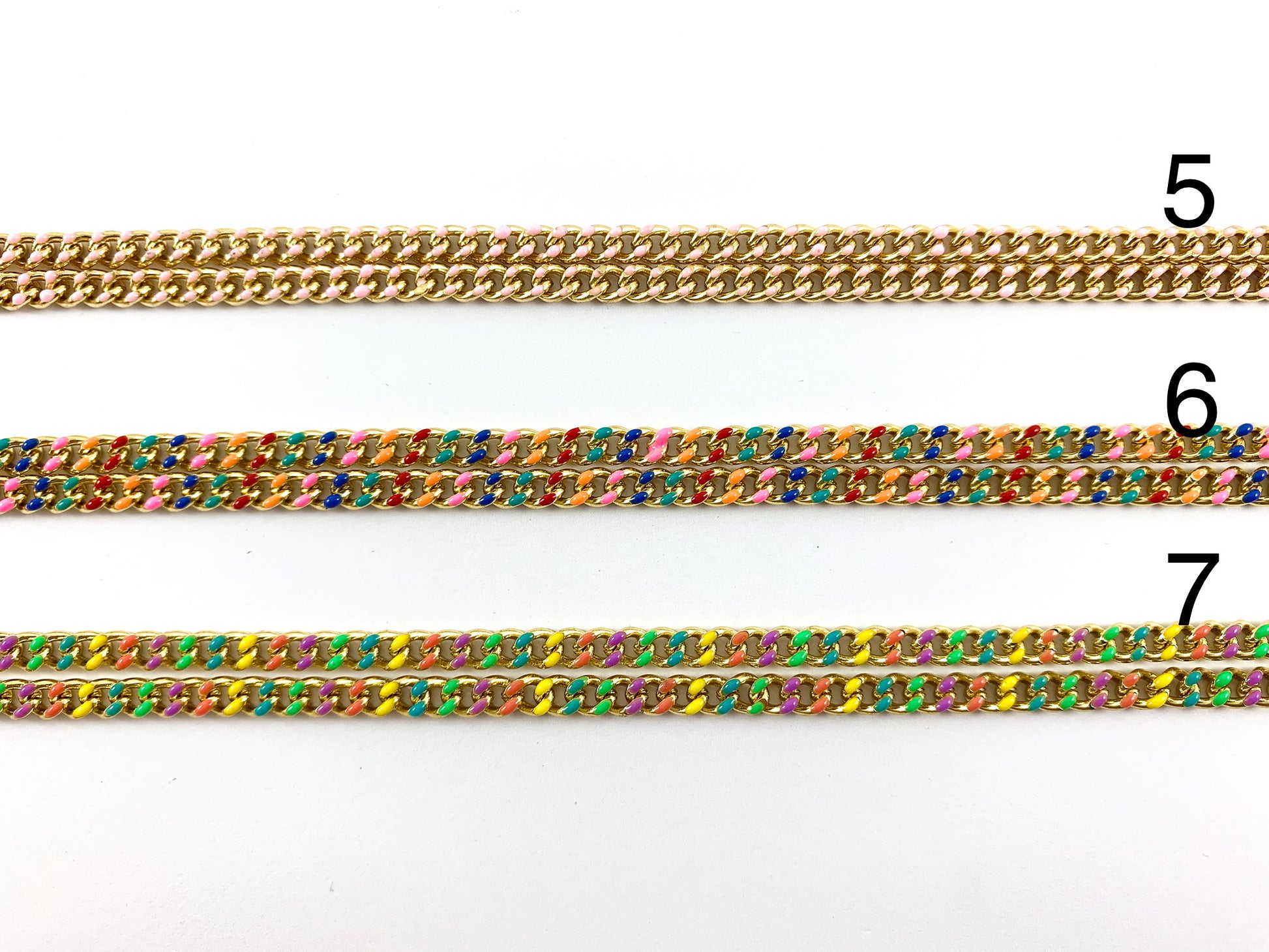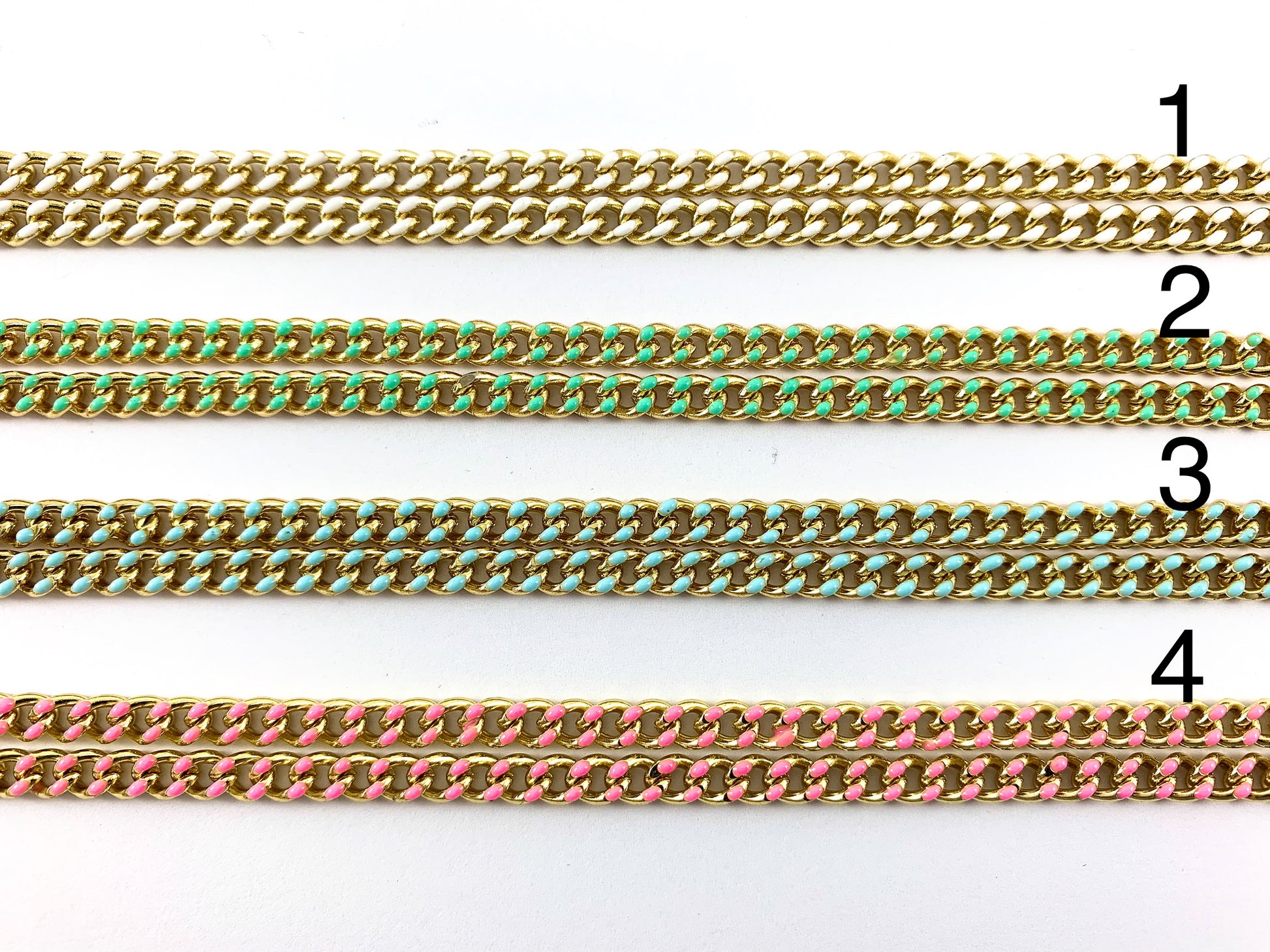 La cadena rectangular chapada en esmalte es adecuada para pulseras, collares y cualquier diseño de joyería. ¡Puedes colocarle amuletos o colgantes para darle un aspecto más exclusivo! ¡Consulta nuestra tienda para ver dijes y colgantes!