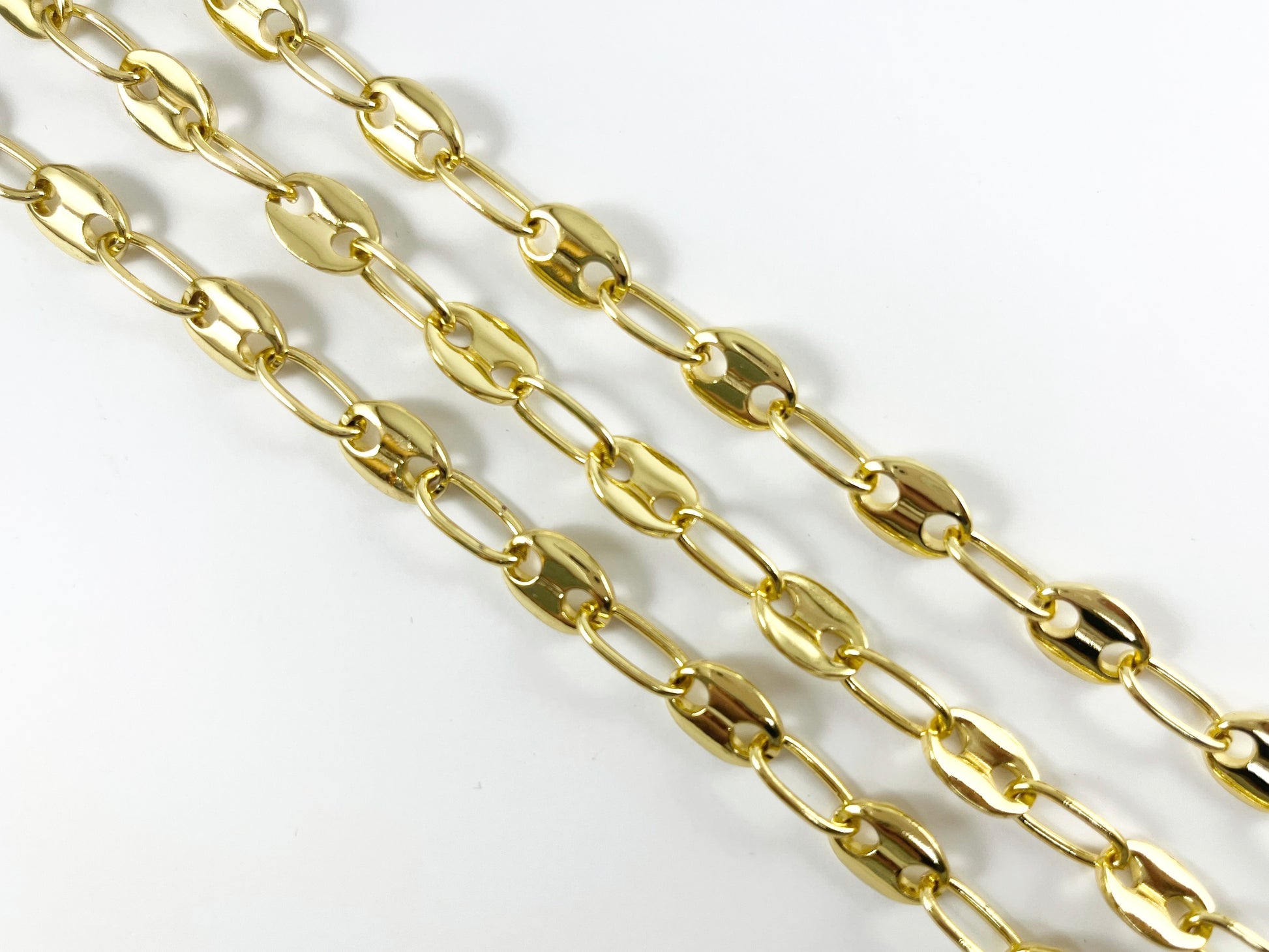 Cadena de botones de marinero hinchada de latón chapado en oro de 18 quilates, cadena de granos de café, cadena de eslabones de ancla para fabricación de collares y pulseras