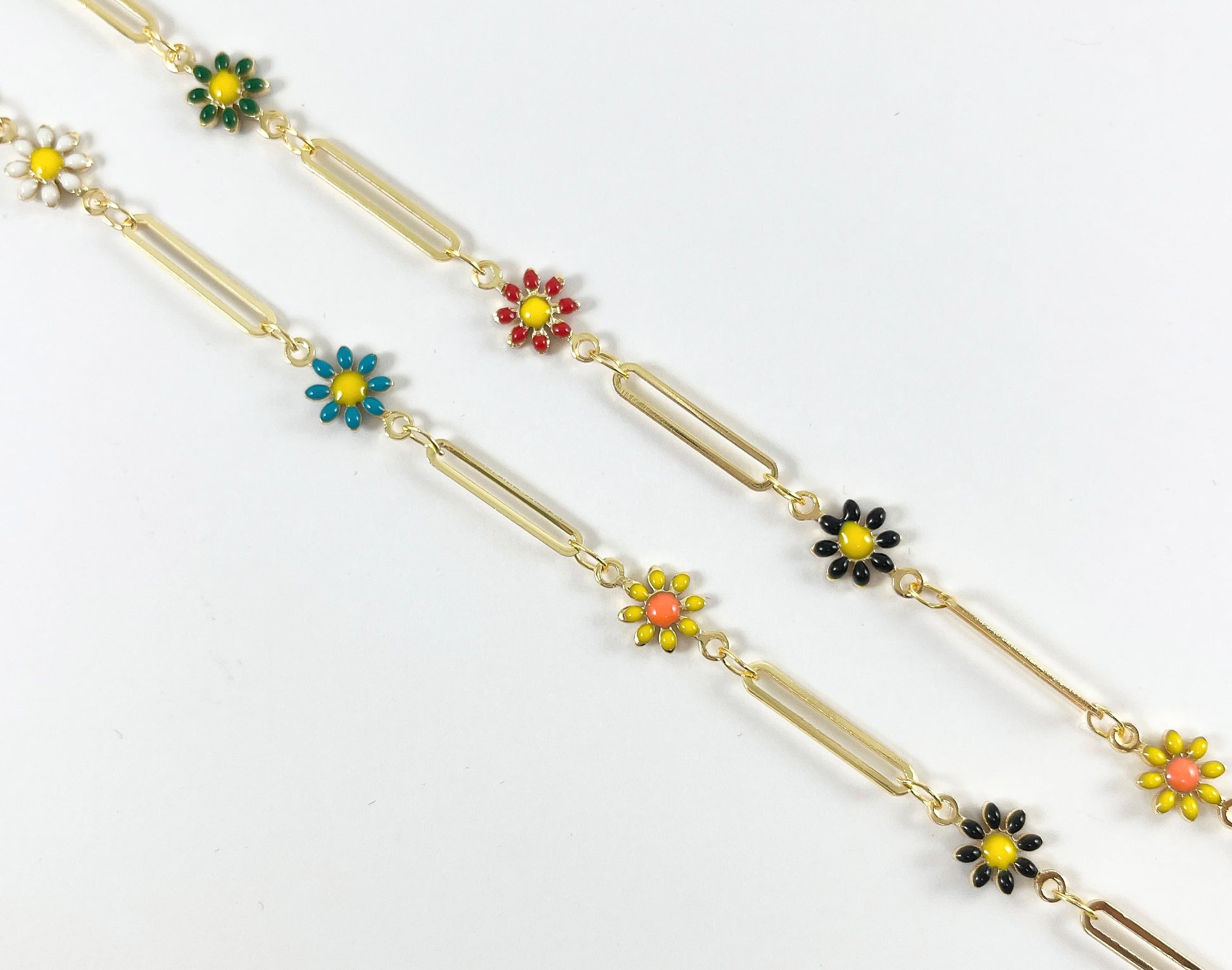 Las cadenas tipo margarita chapadas en esmalte son adecuadas para pulseras, collares y cualquier diseño de joyería. ¡Puedes colocarle amuletos o colgantes para darle un aspecto más exclusivo! ¡Consulta nuestra tienda para ver dijes y colgantes!