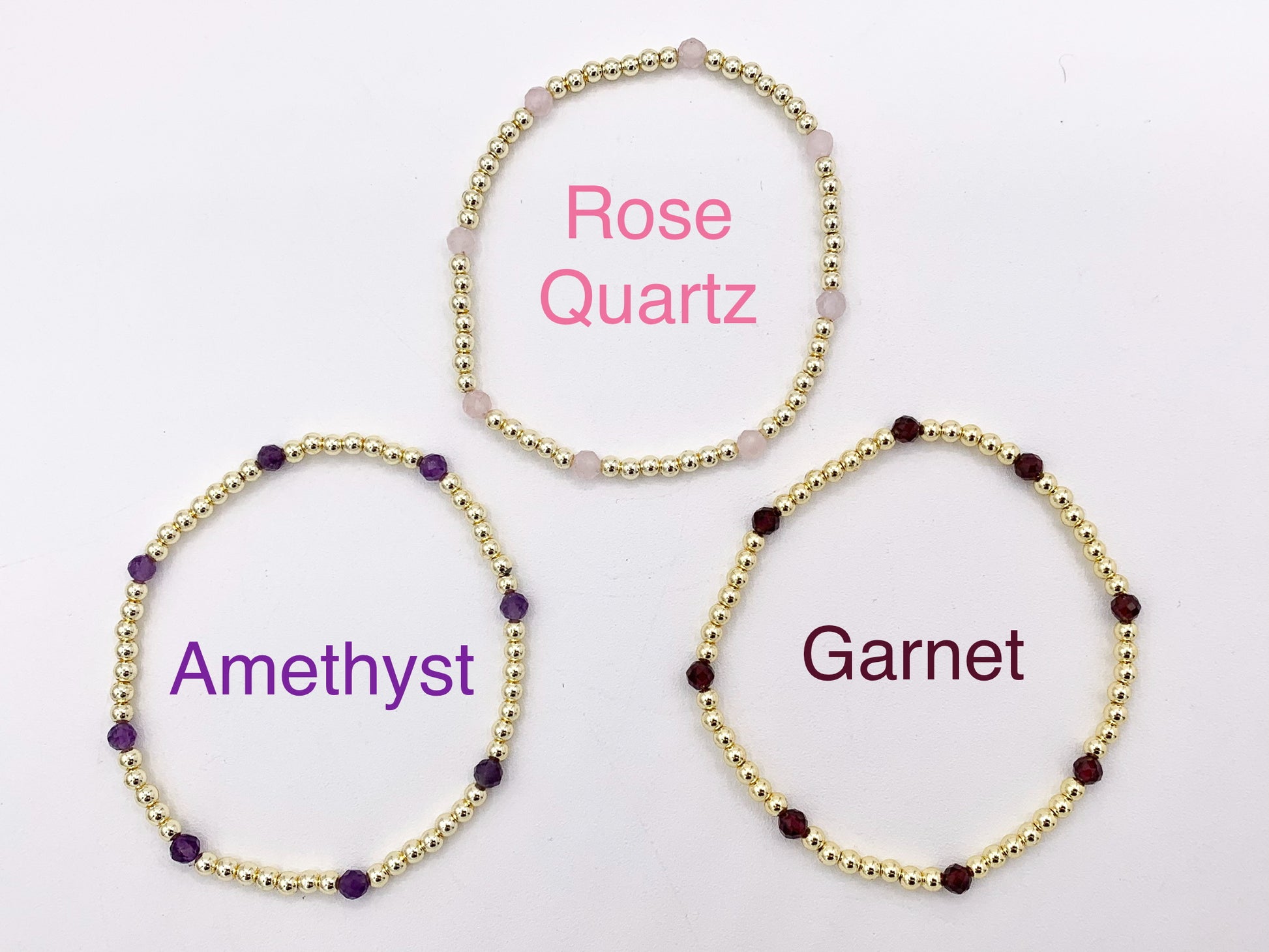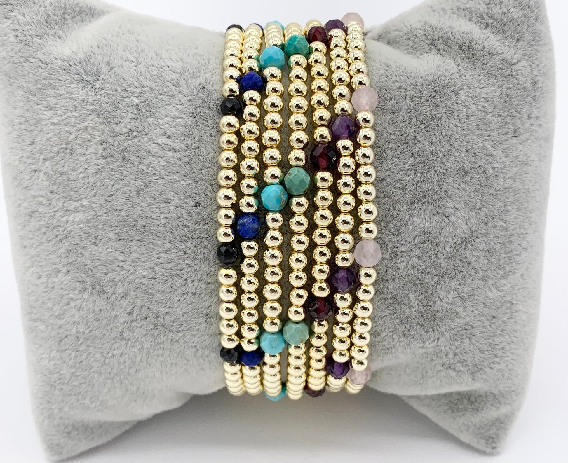 This beautiful gold plated hematite stretchy bracelet can be worn with almost any outfit! We have different stones to choose from!
