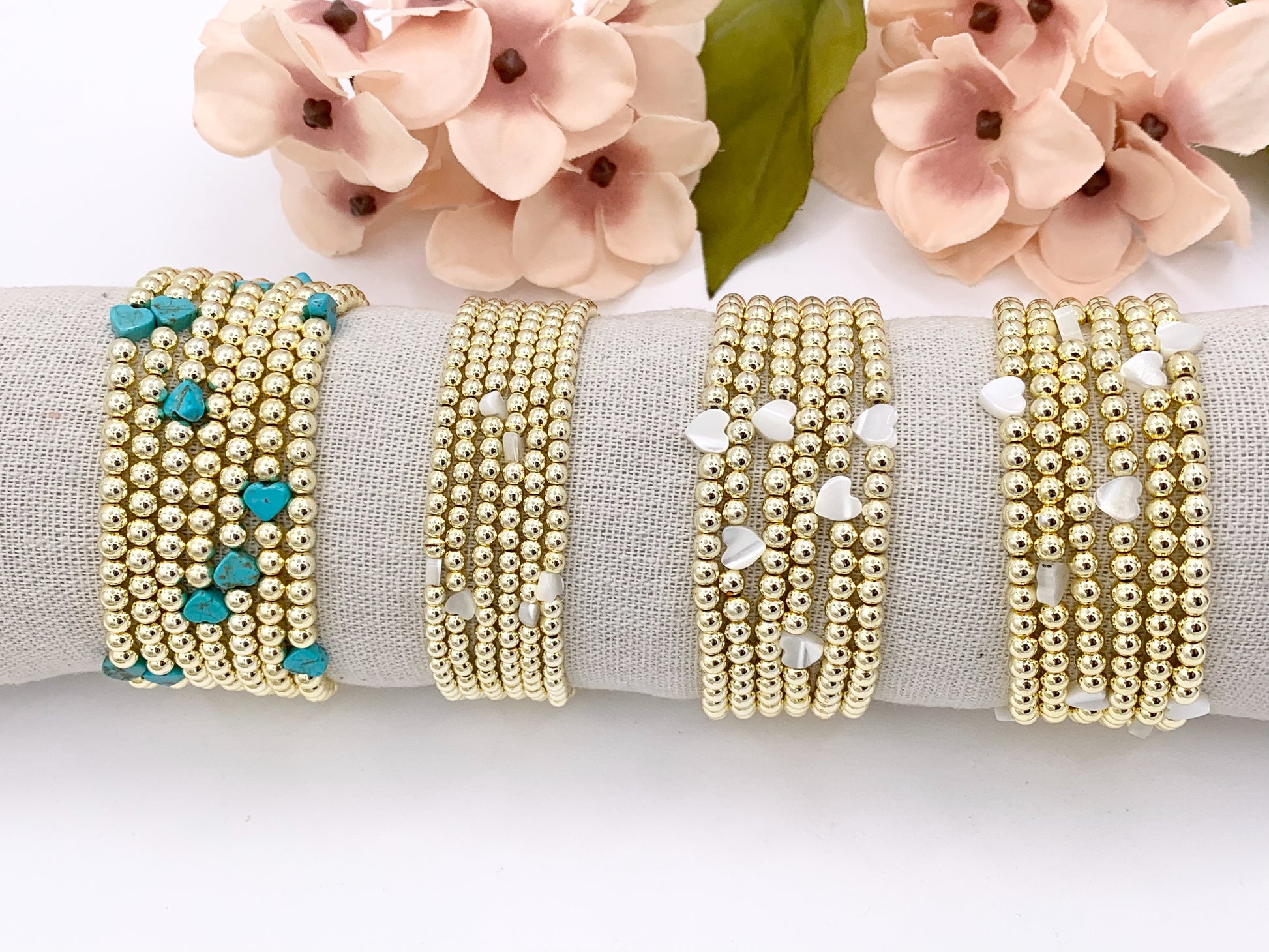 These beautiful gold plated hematite stretchy bracelet can be worn with almost any outfit! We have different styles to choose from!