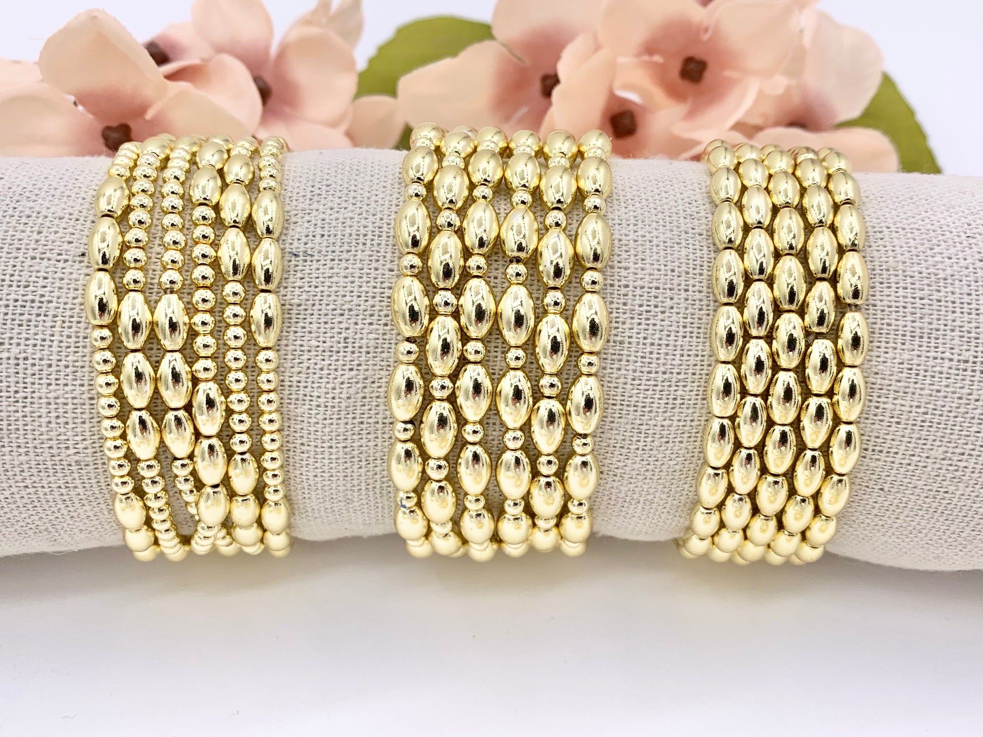 These beautiful gold plated hematite stretchy bracelet can be worn with almost any outfit! We have different styles to choose from!
