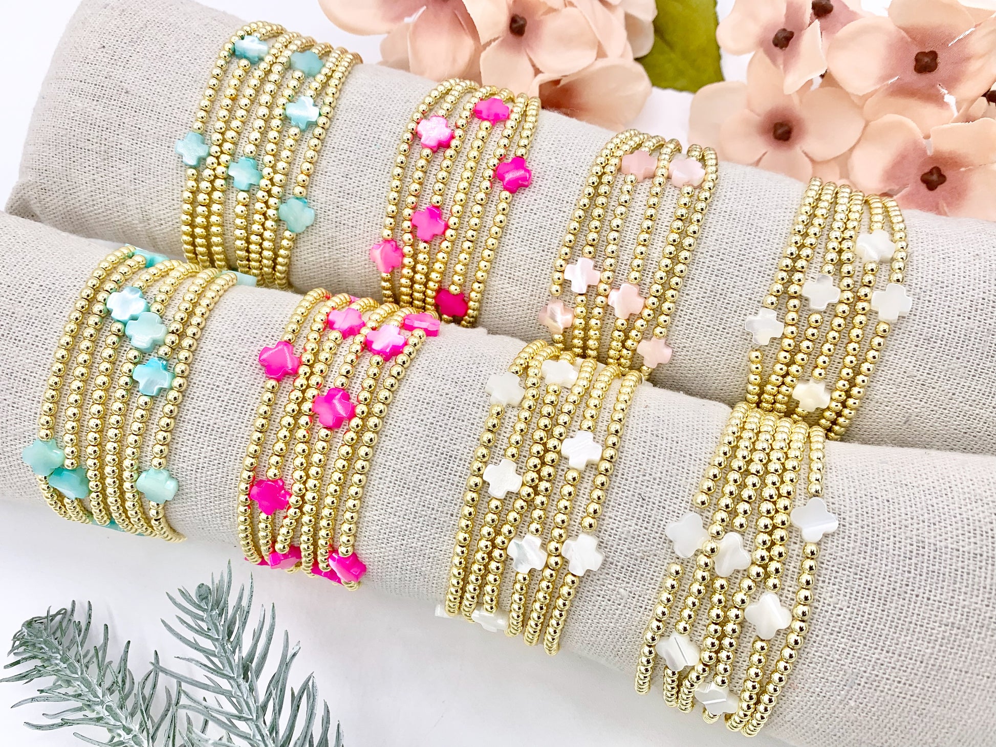 These beautiful gold plated hematite stretchy bracelet can be worn with almost any outfit! We have different styles to choose from!