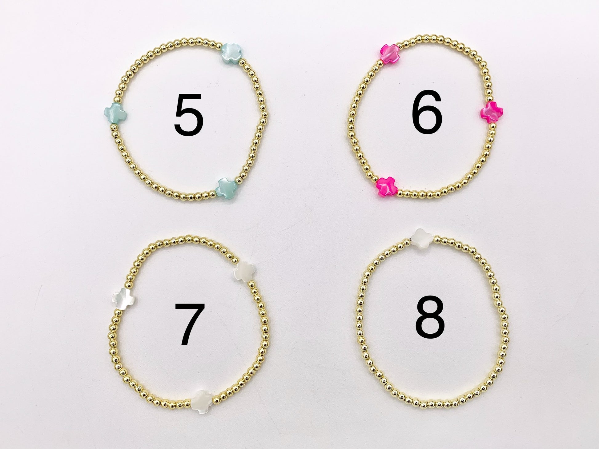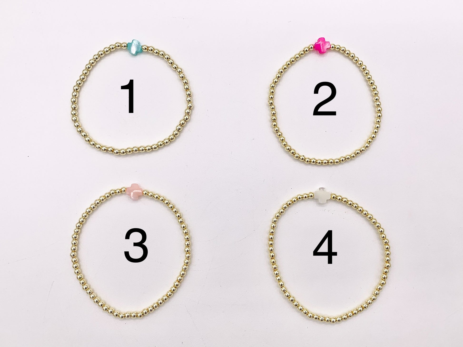 Size: 3mm Gold Hematite + 8mm Shell Cross