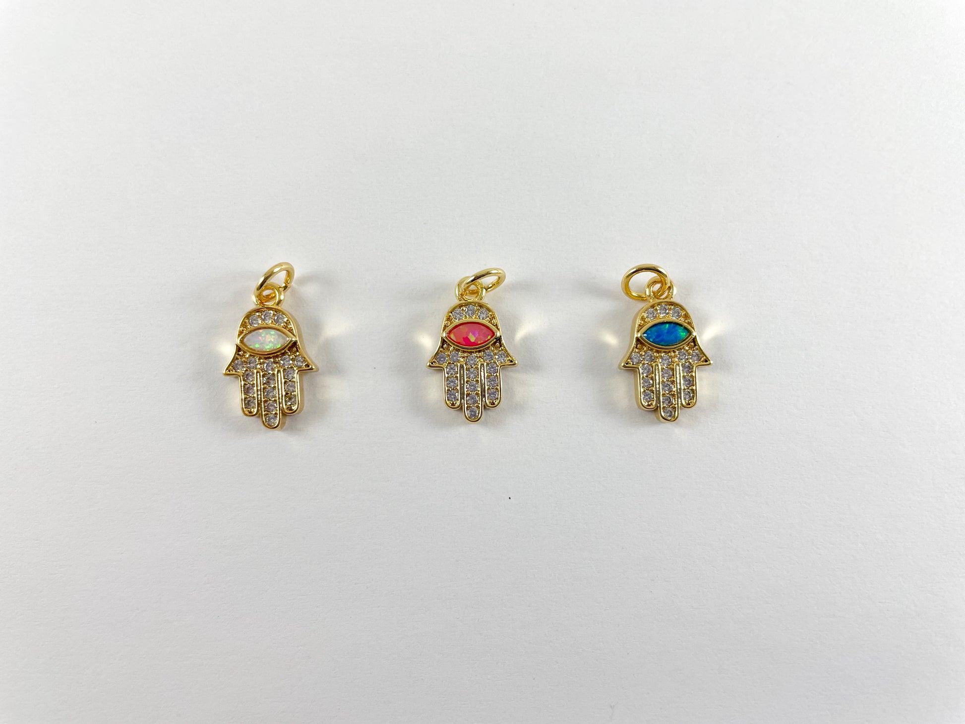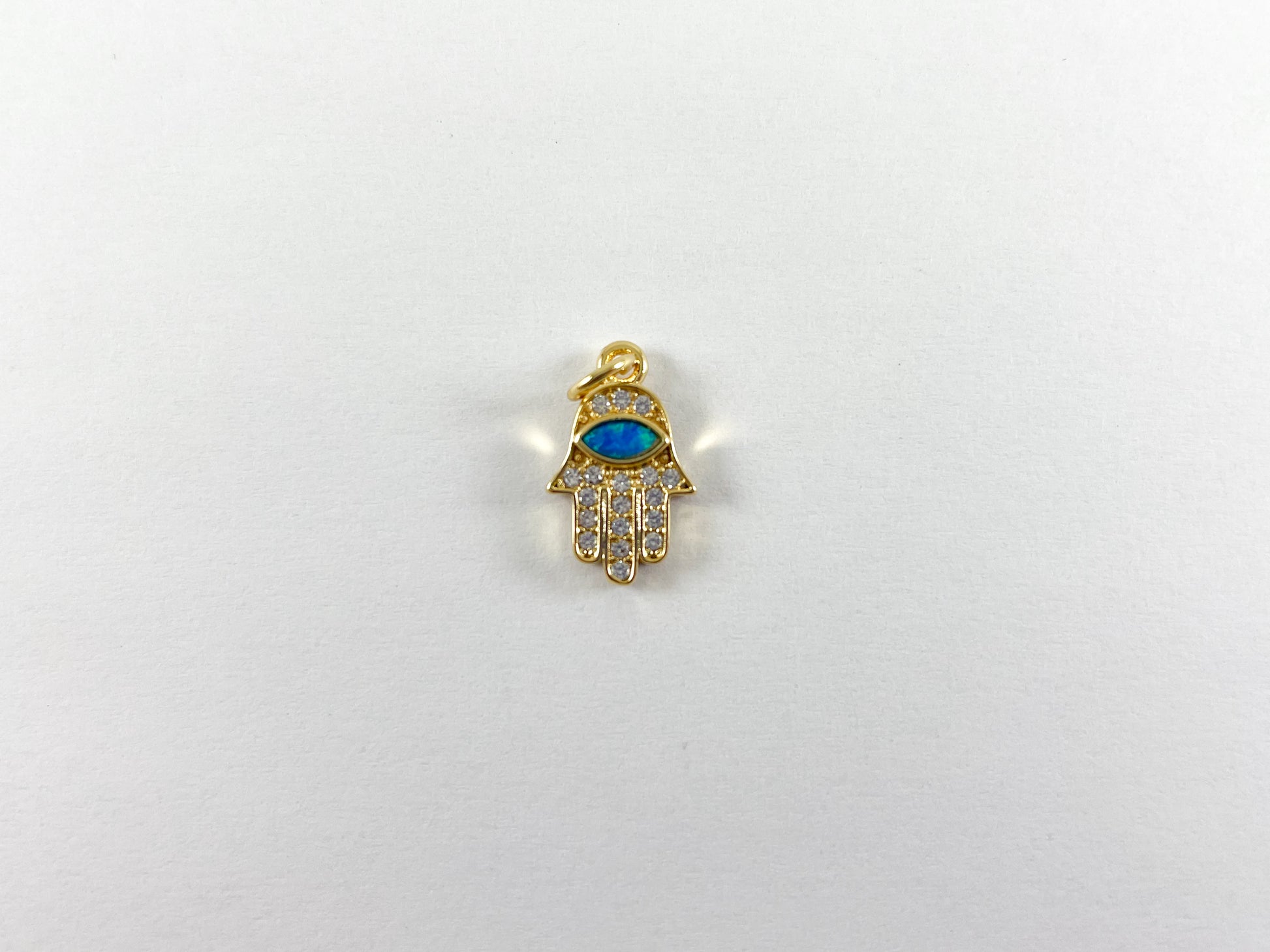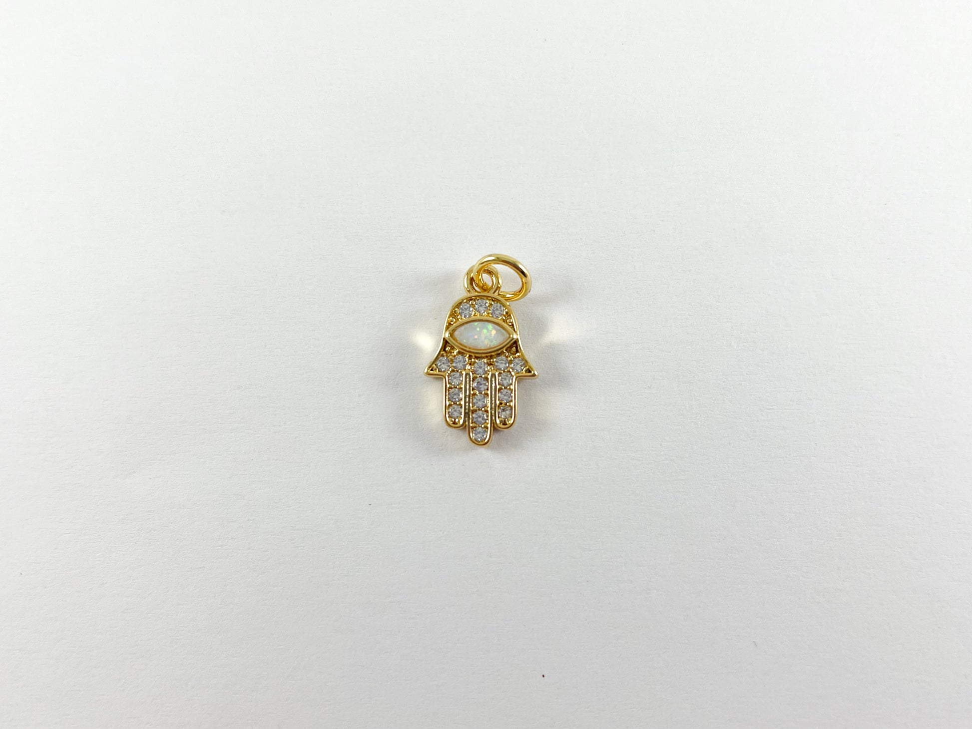 18K Gold Plated Micro CZ Pave Rhinestone Japanese Opal Hamsa Hand Pendant Charm Over Brass 5pcs