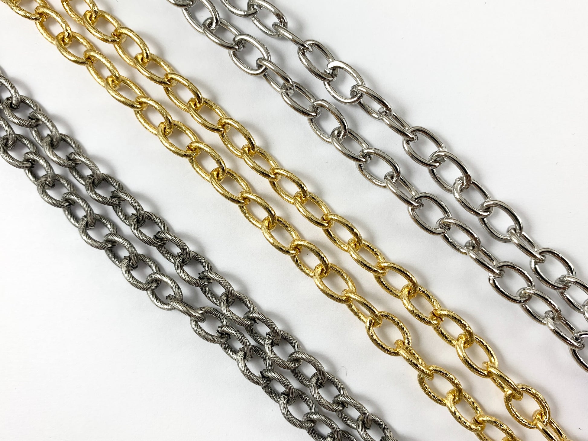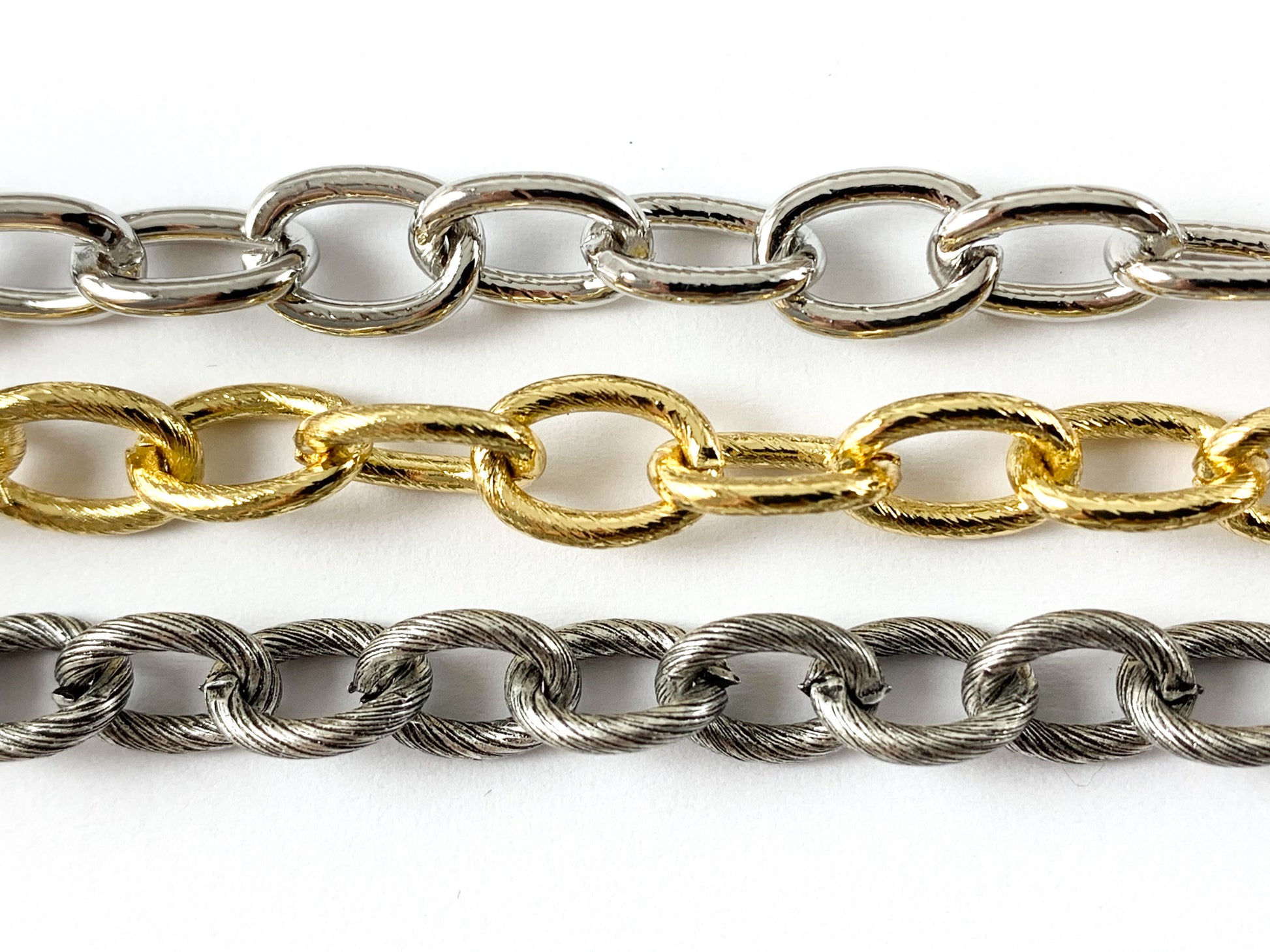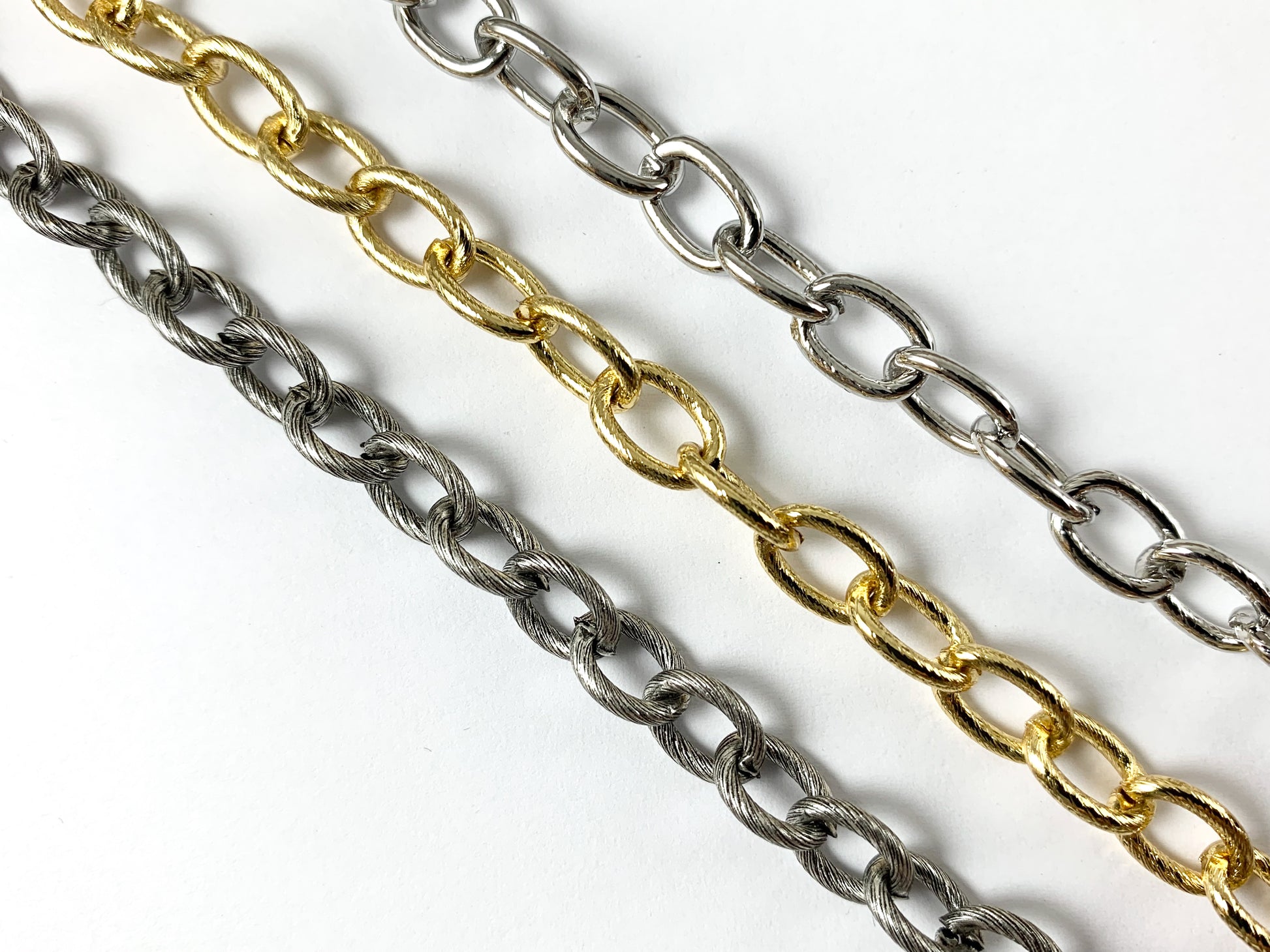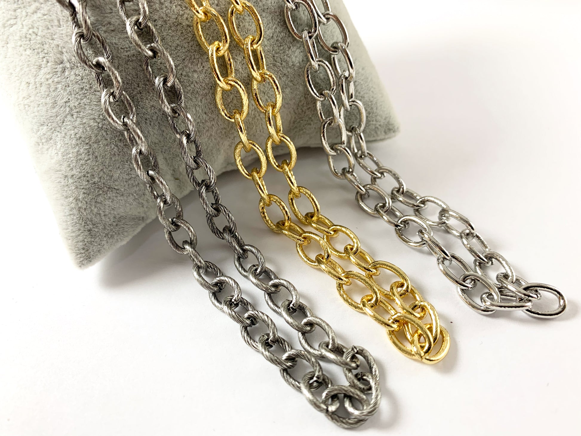 Cadena texturizada de eslabones ovalados gruesos chapados en oro de 18 quilates, platino y plata antigua