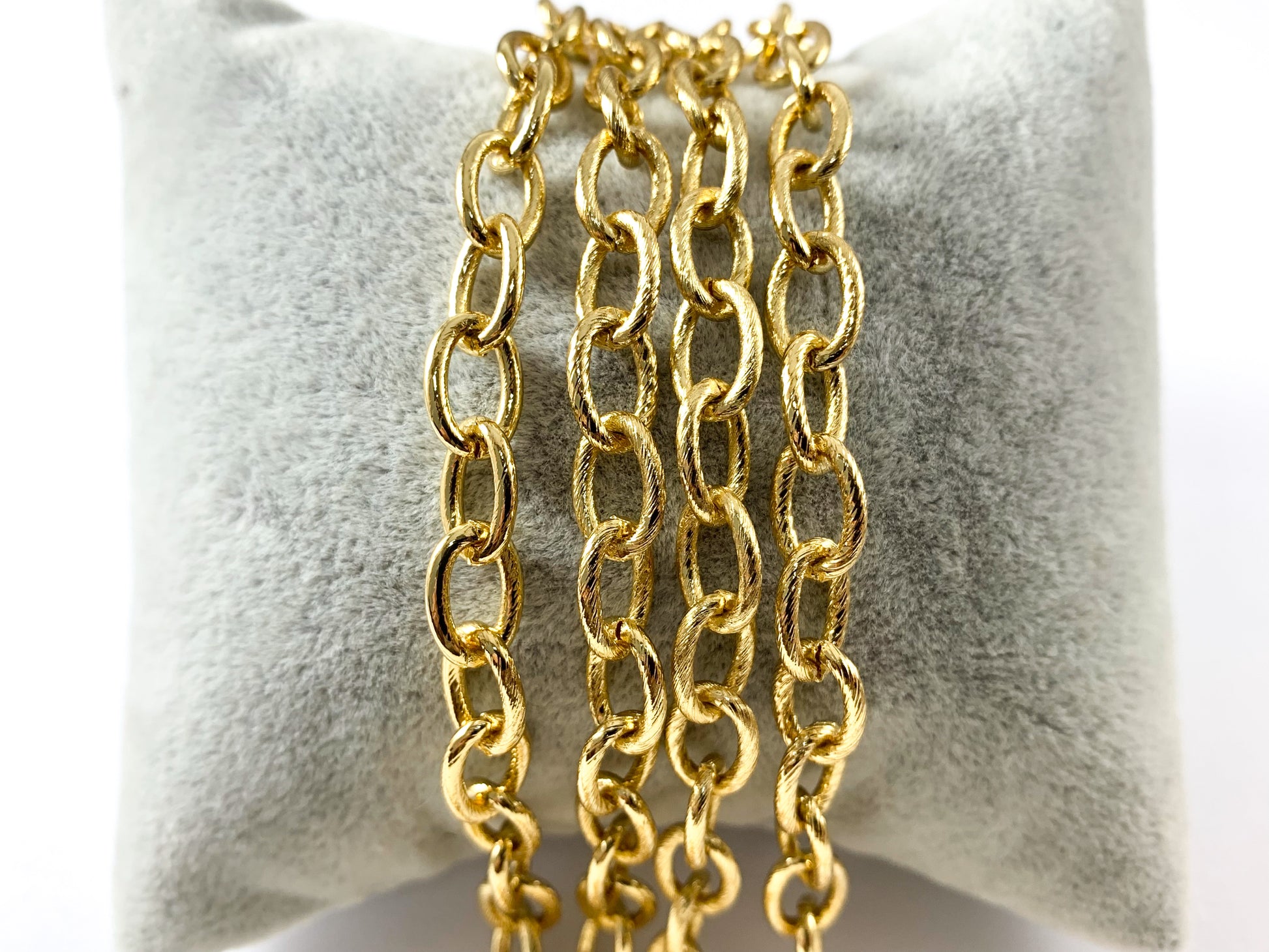 La cadena ovalada chapada en oro real es adecuada para pulseras, collares y cualquier diseño de joyería. ¡Puedes colocarle amuletos o colgantes para darle un aspecto más exclusivo! ¡Consulta nuestra tienda para ver dijes y colgantes!