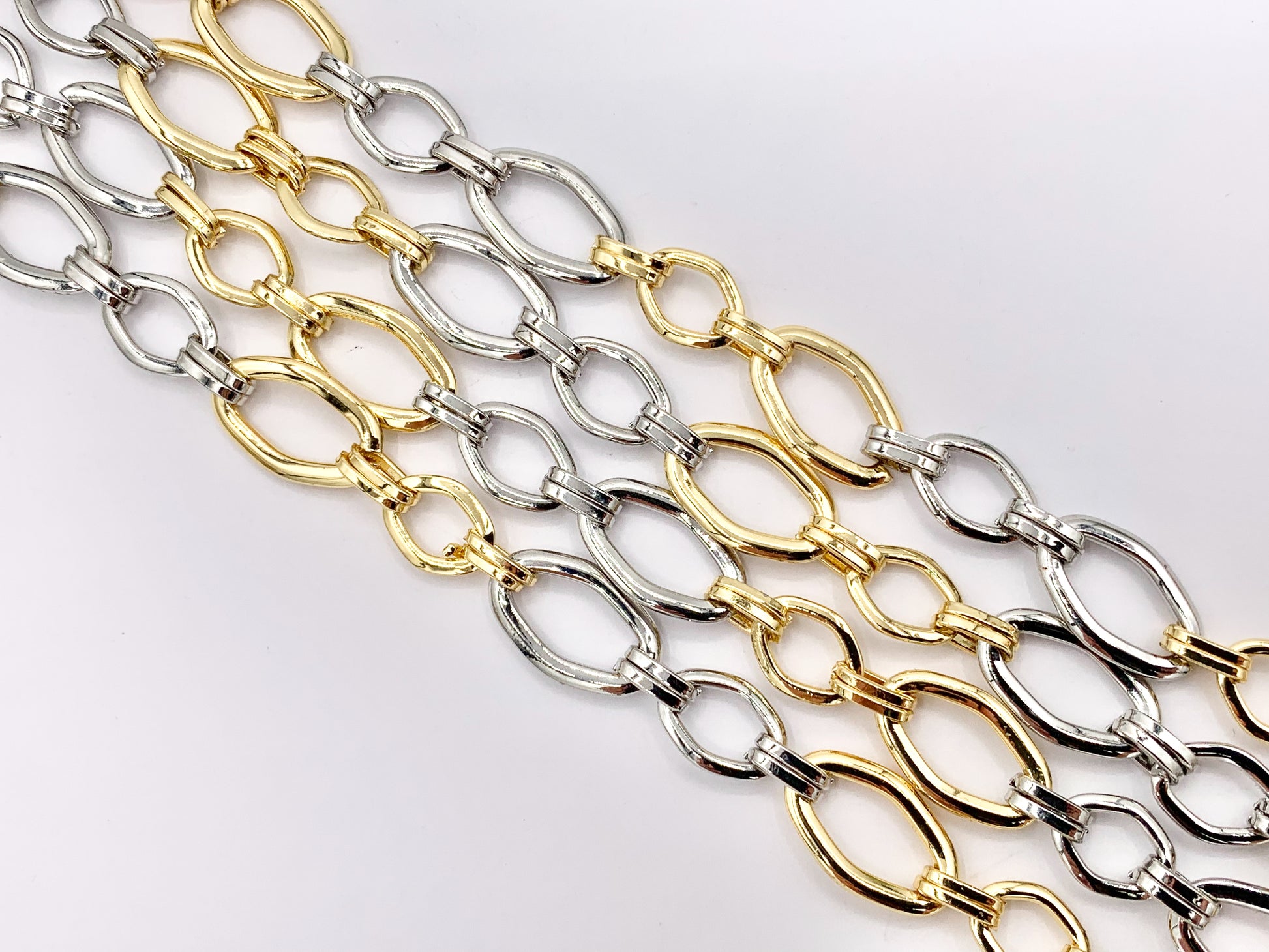 2 Tone Real Gold/Platinum Plated Oval Chain are suitable for bracelets, necklaces and any jewelry designs. You can attach dangle charms or pendants to it for a more unique look! Check our store for charms and pendants!!