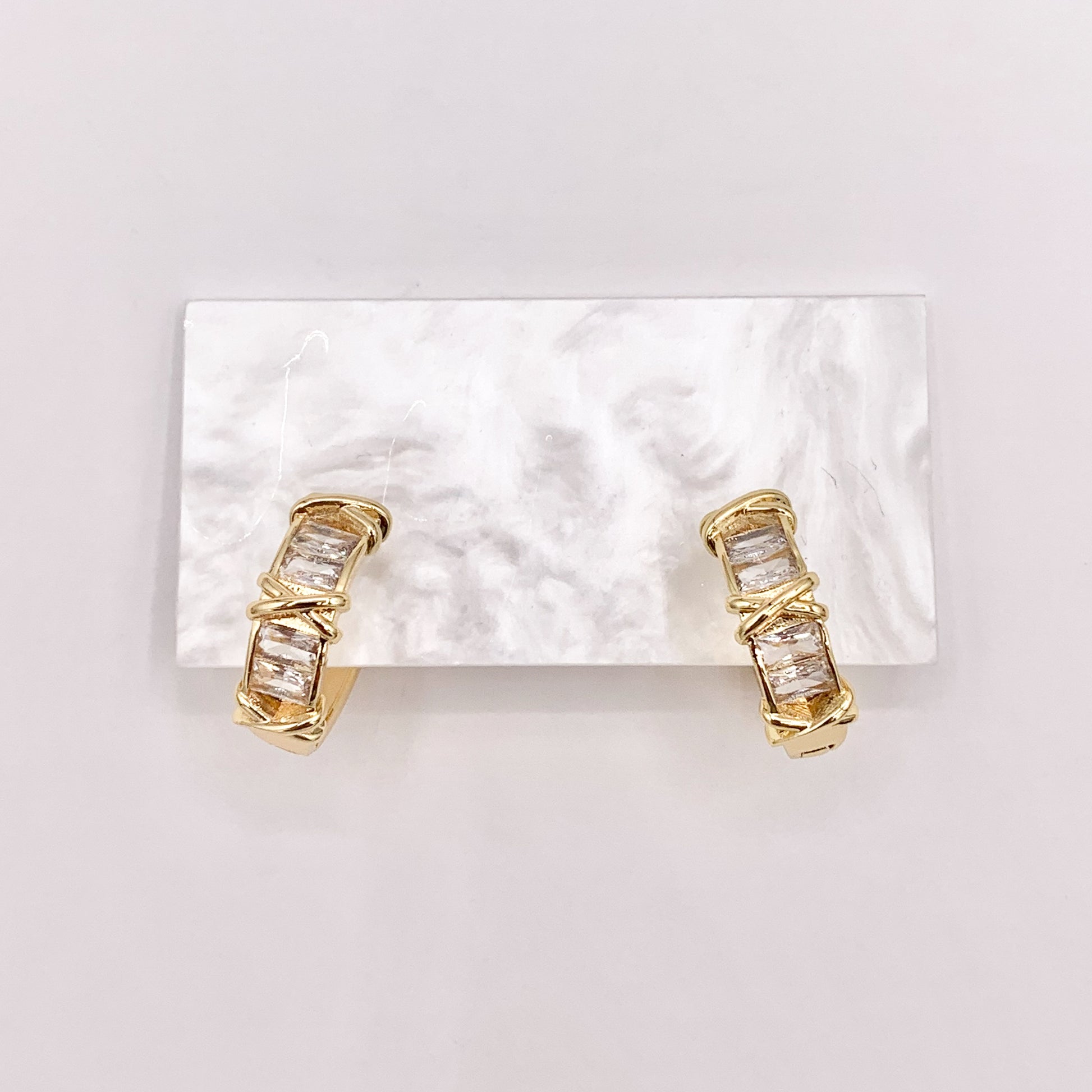 20mm Baguette Earring Hoop Huggies in CZ Pave Real Gold 18K Over Copper 4 PAIRS