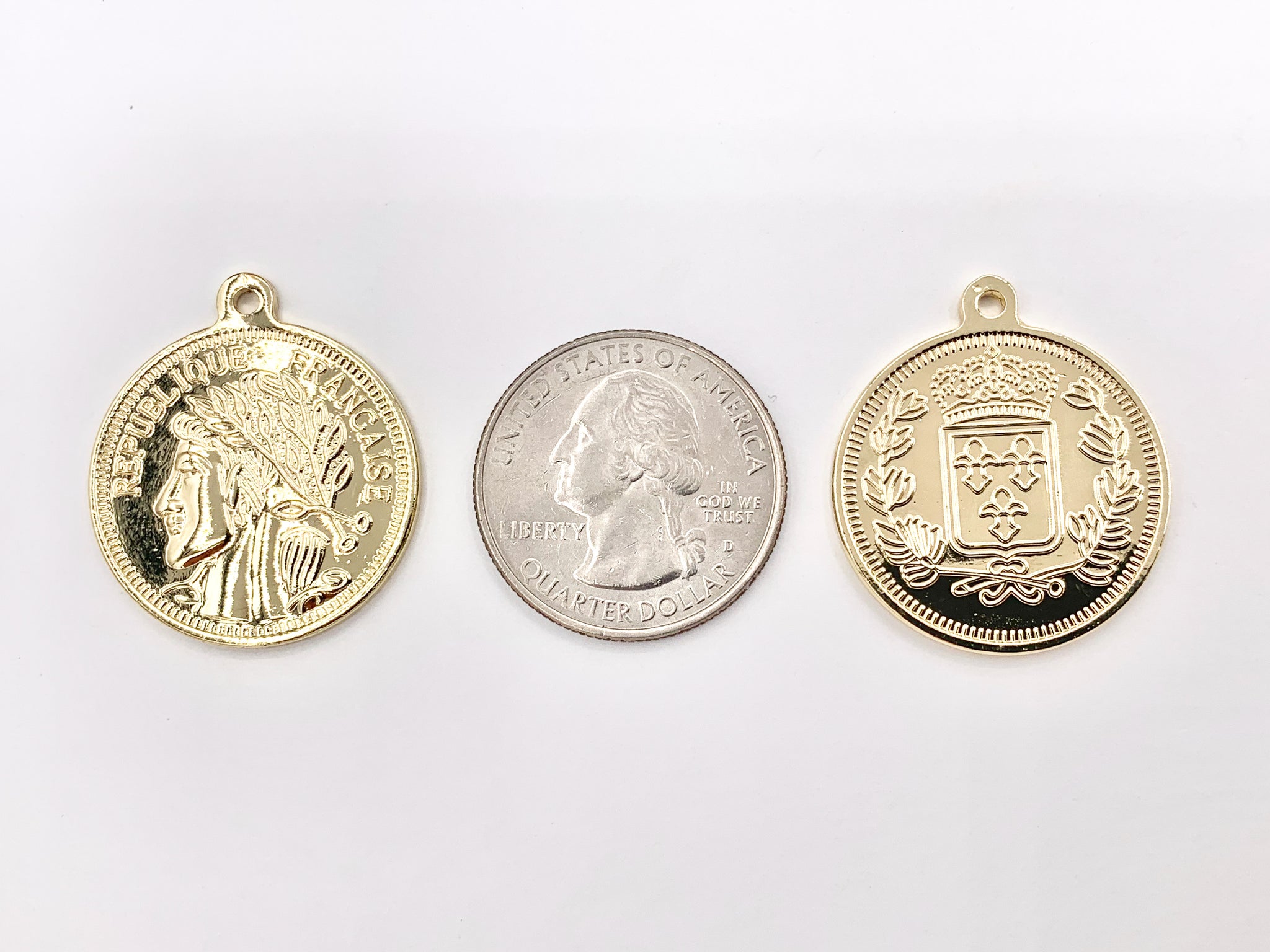 25mm Republique Francaise Token Coin Pendant in 18K Gold plated Copper
