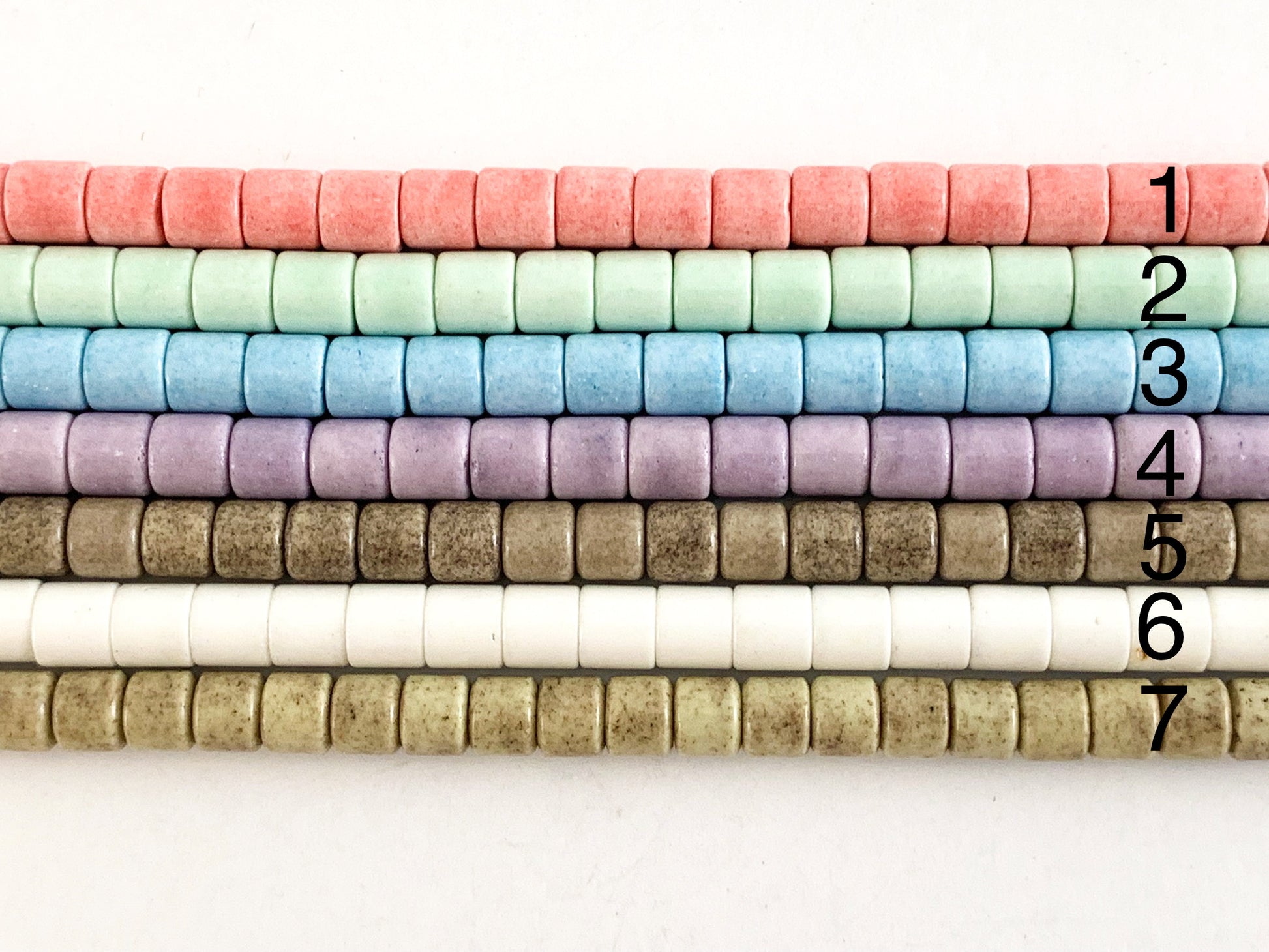 Estas ágatas teñidas vienen en siete colores suaves diferentes.