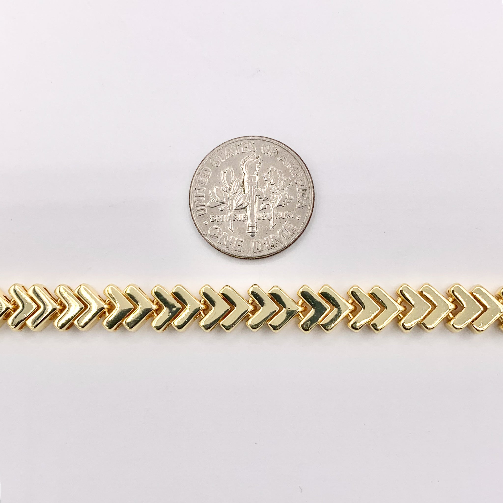 These delicate chevron link chain bracelets are made with real 18k Gold plated Copper.