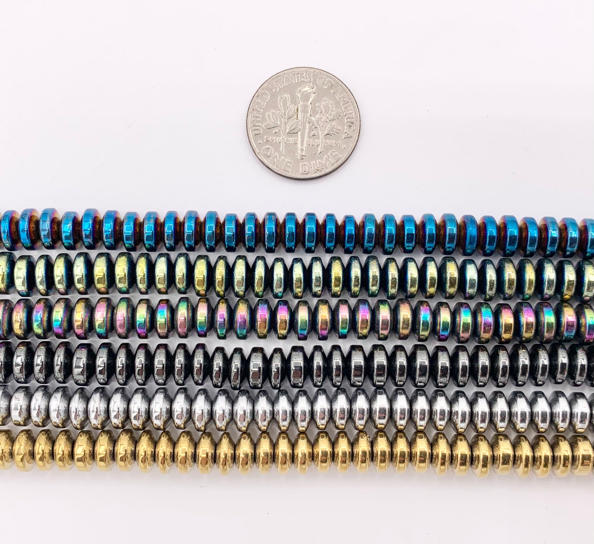 6mm Natural Hematite Rondelle Saucer Smooth Energy Beads Around 15"-16" Available in 6 Colors 1 Strand