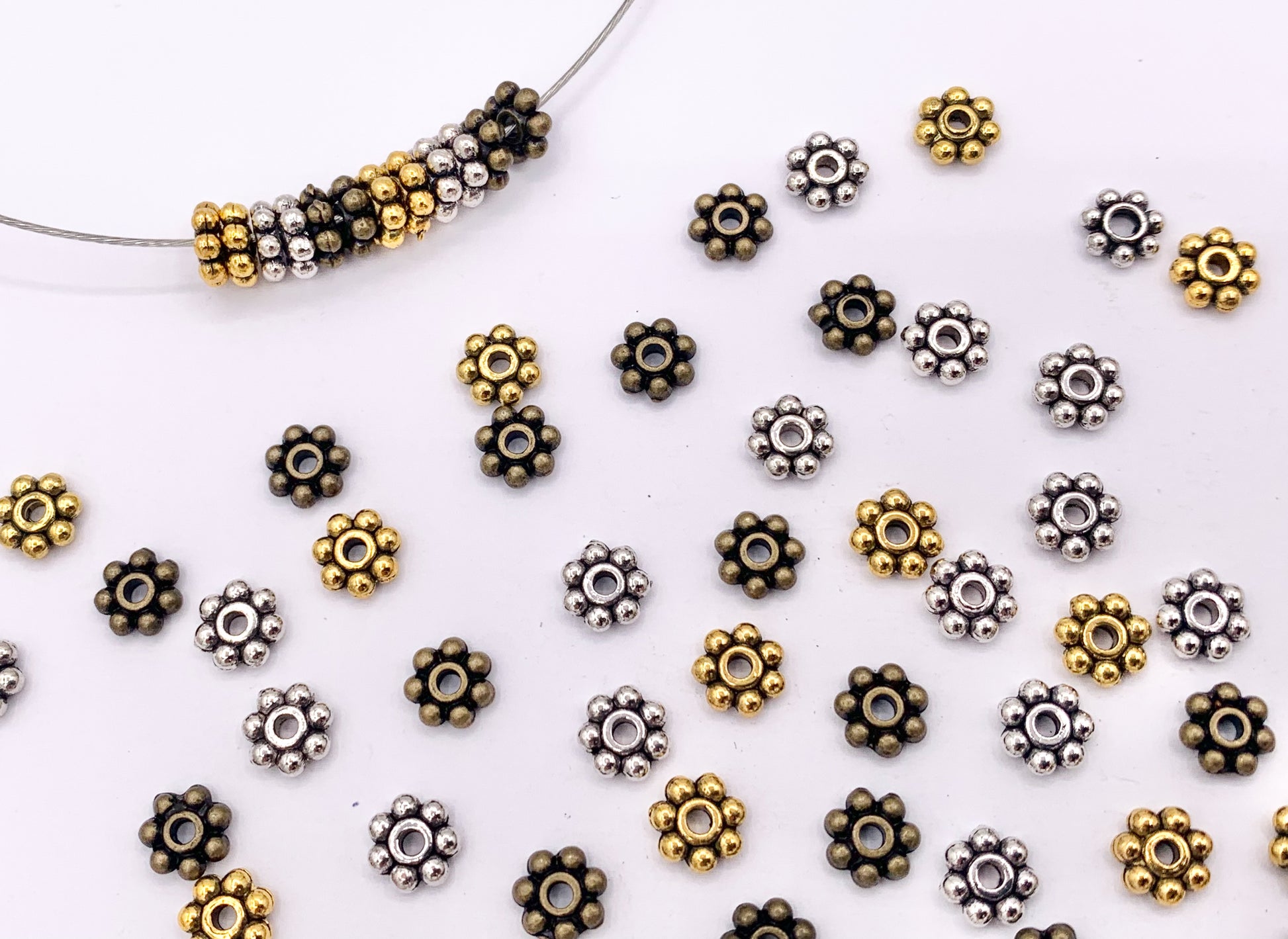 6mm Pewter Tiny Daisy Spacer Beads Cute Flower Space Beads in Gold, Silver, and Bronze Color 100g