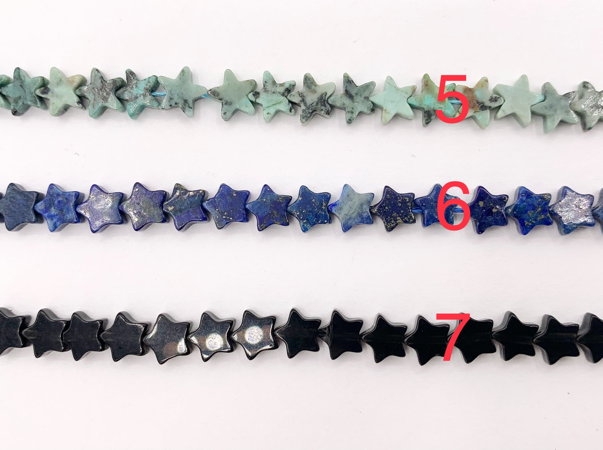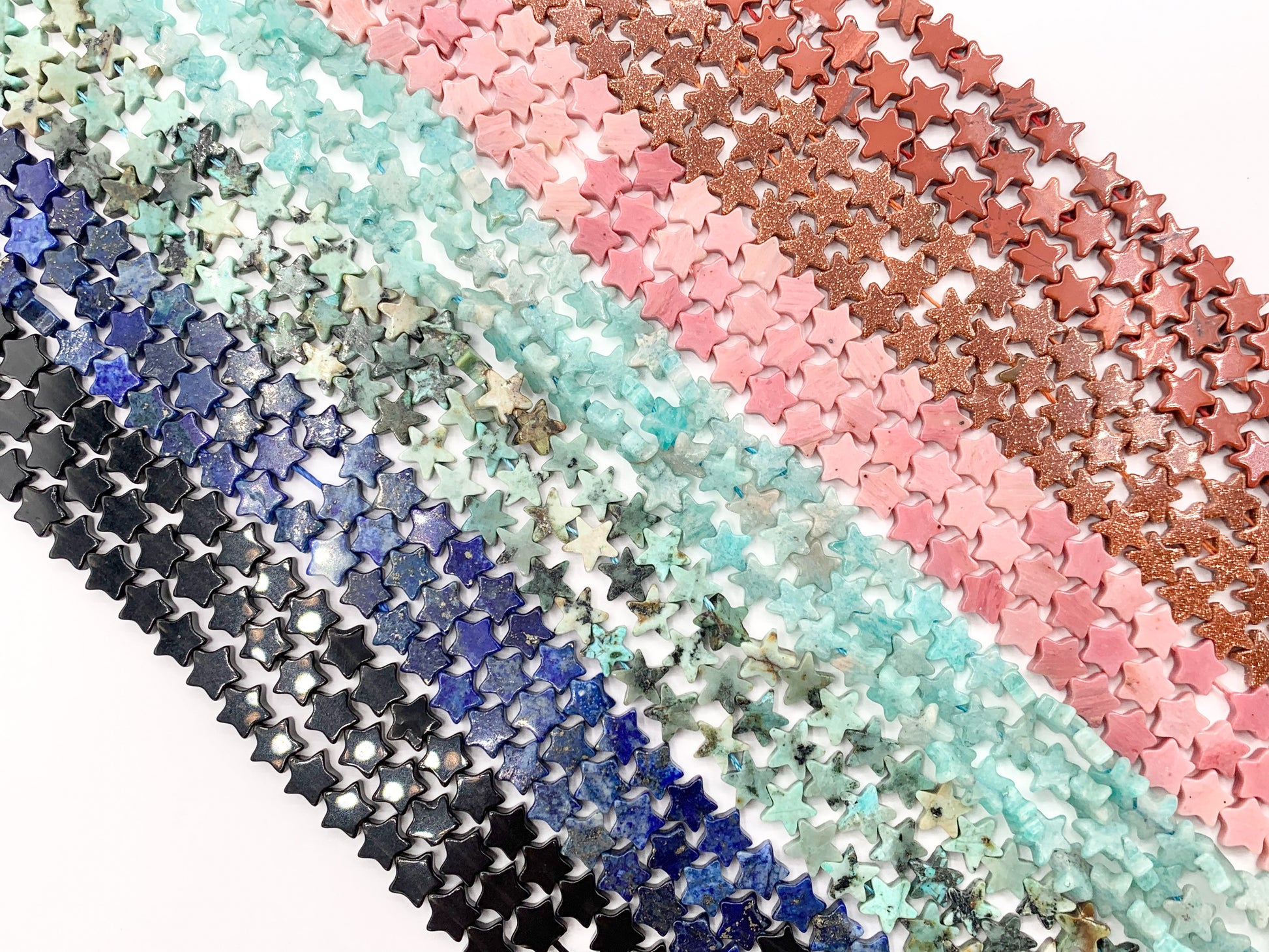 6mm Star Shape Hand Cut Gemstone Beads Red Jasper/ Goldstone/ Rhodonite/ Peruvian Amazonite/ Lapis/ Black Obsidian 15"