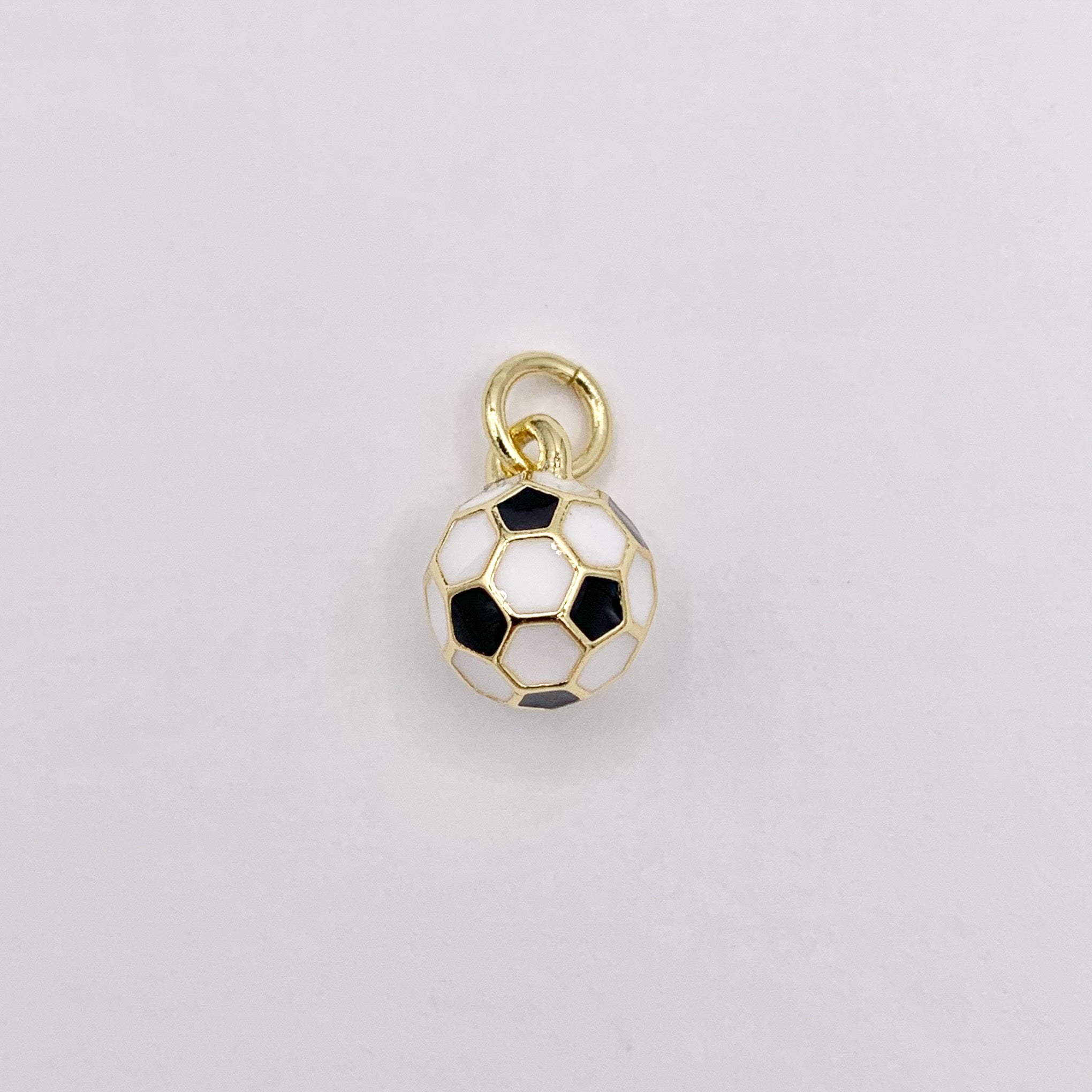 These high quality enamel soccer charms are real gold 18K plated with a copper base. These charms can be wonderful made into bracelets, dainty necklaces, earring drops and even used for crafts.