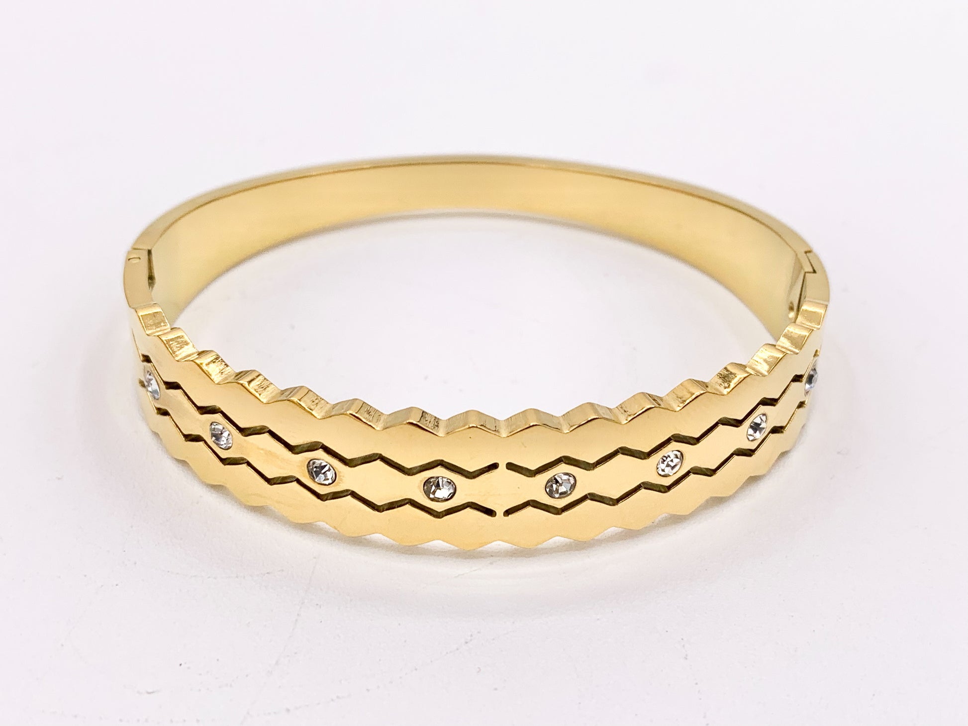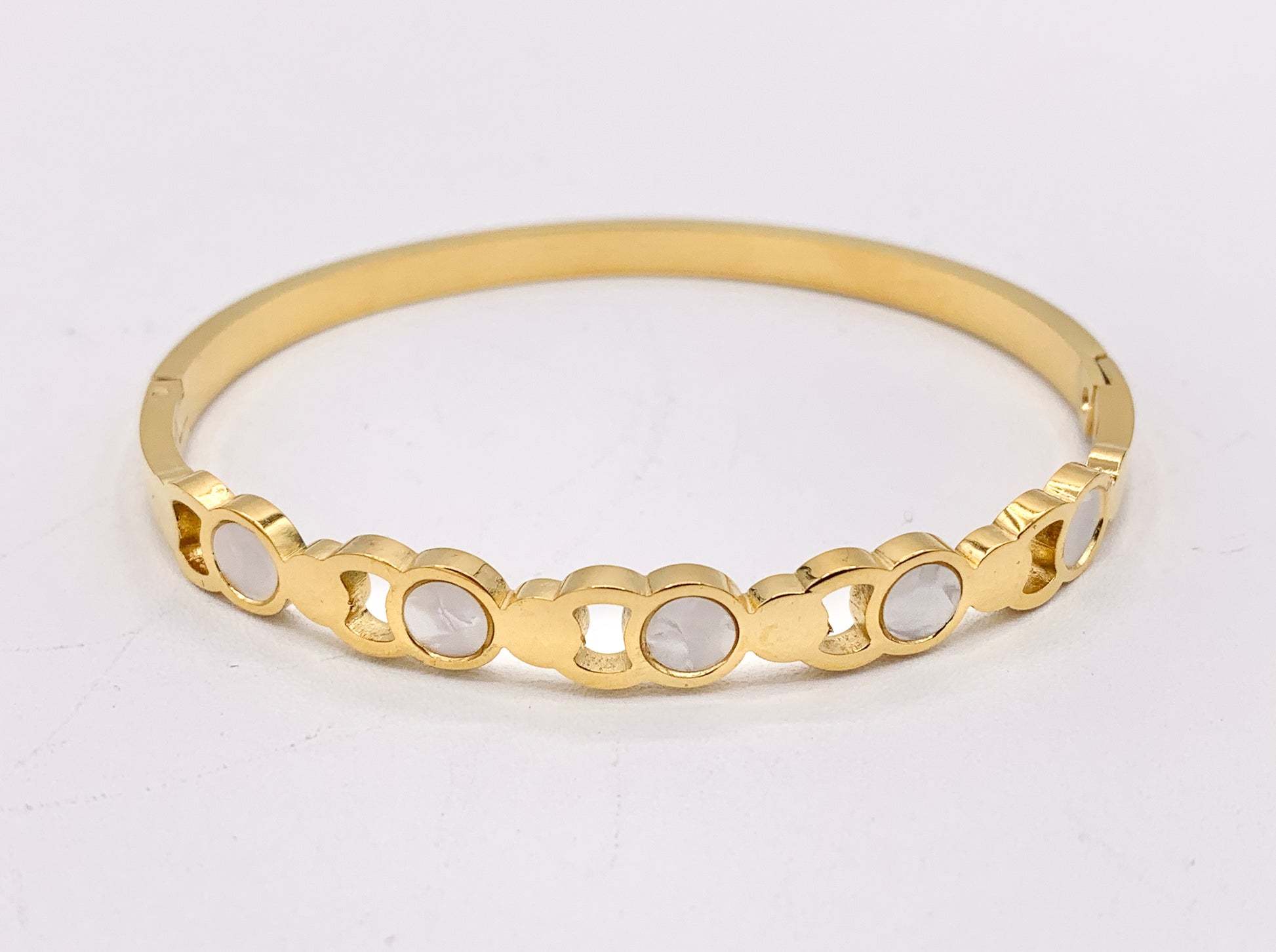 7 " Stainless Steel Bracelets CZ Multi Shell Acetate White Twist Coin Rhinestone Close Bangles in 18K Gold plated Stainless Steel