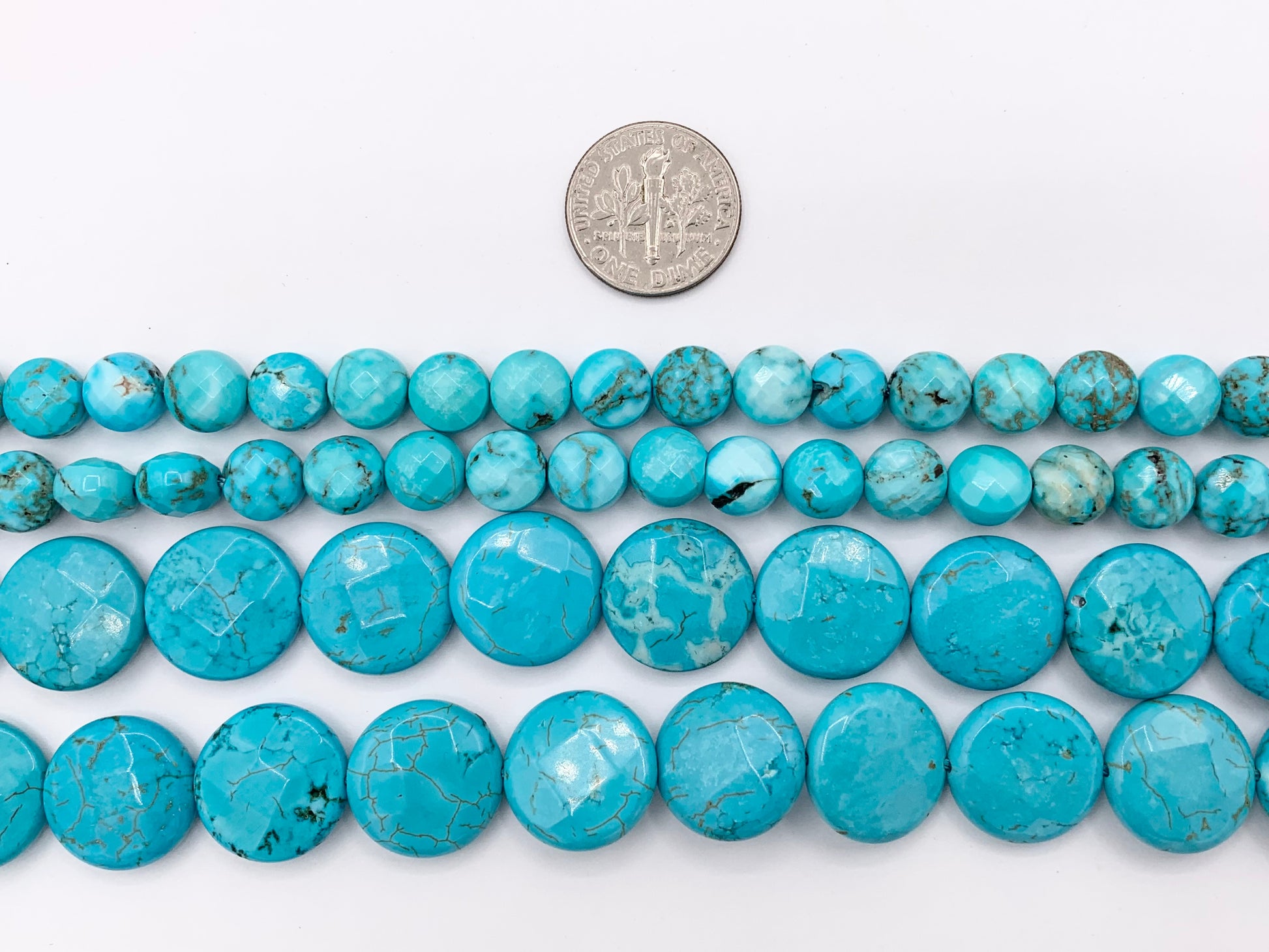 8mm & 15mm Natural Magnesite Dyed Turquoise Blue Color Faceted Coin Beads 1 Strand Around 15"