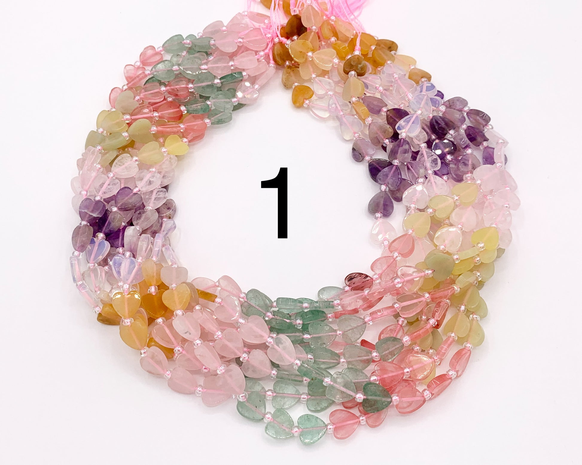8mm Heart Shape Hand Cut Mixed Gemstone Valentine's Day Beads 14-15" Dyed Jade/Quartz/Amethyst/Mookaite/Rhodonite Etc 1 Strand