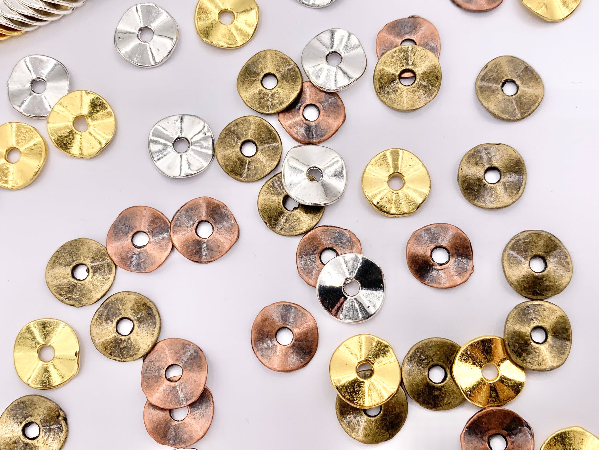 9.5mm Pewter Shiny Smooth Wavy Spacer Beads in Gold, Silver, Antique Bronze, Copper 125g