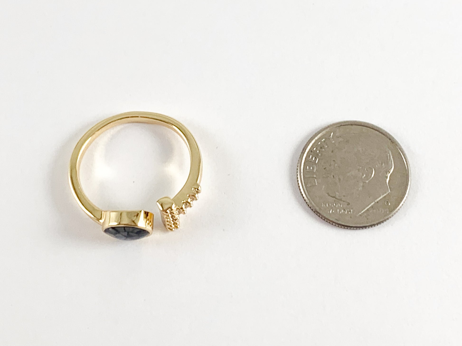 Anillo frontal abierto ajustable en forma de T de concha de abulón en cobre chapado en oro real de 18 quilates