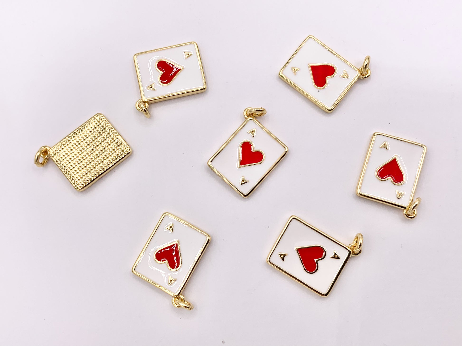 Ace of Heart Poker Player Card Charm Enamel Red Heart Charm Gold 18K Plated Over Copper 8 PCS