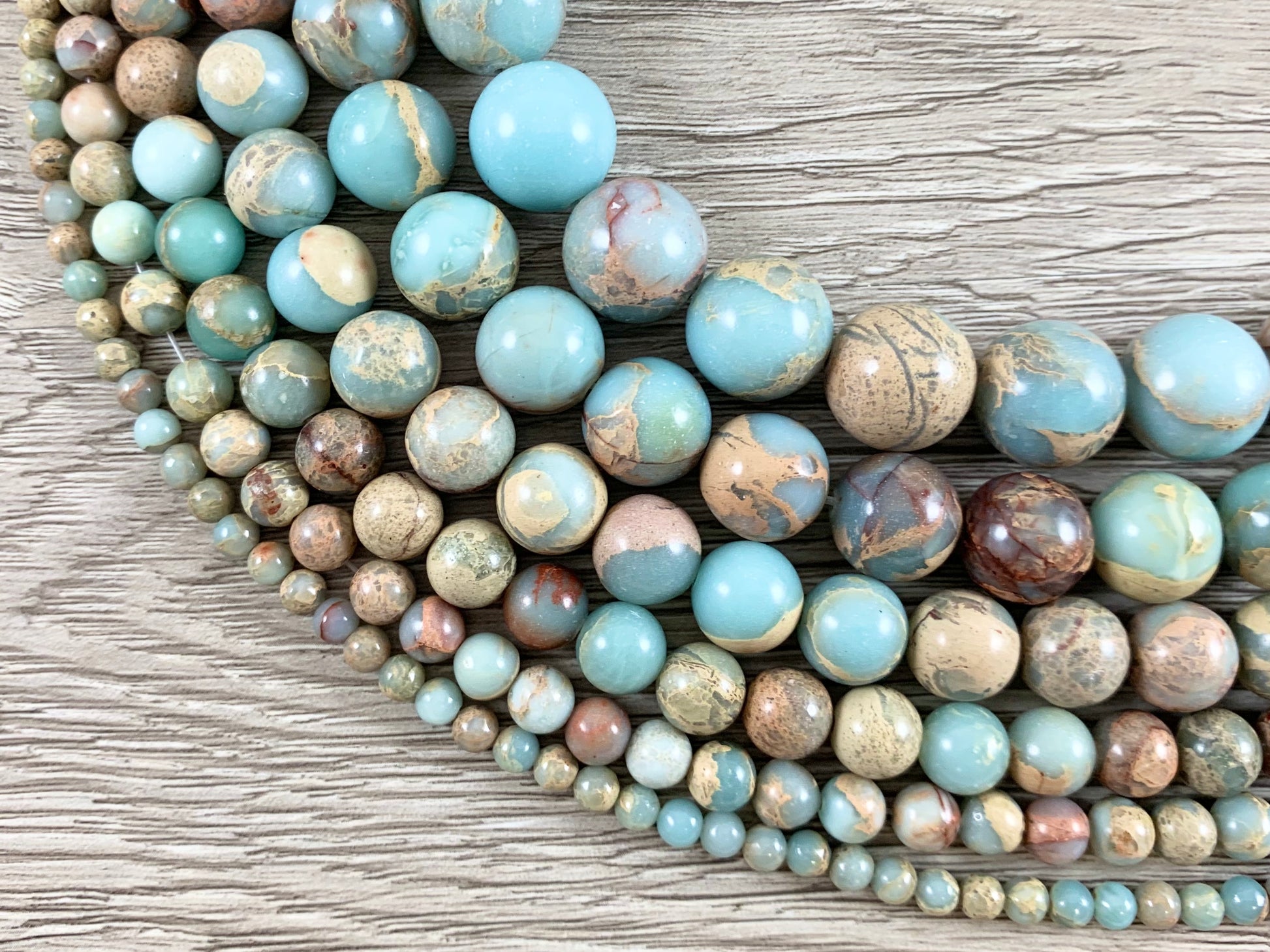 Cuentas naturales de jaspe Aqua Terra en forma redonda. ¡Perfecto para cualquier joyería!