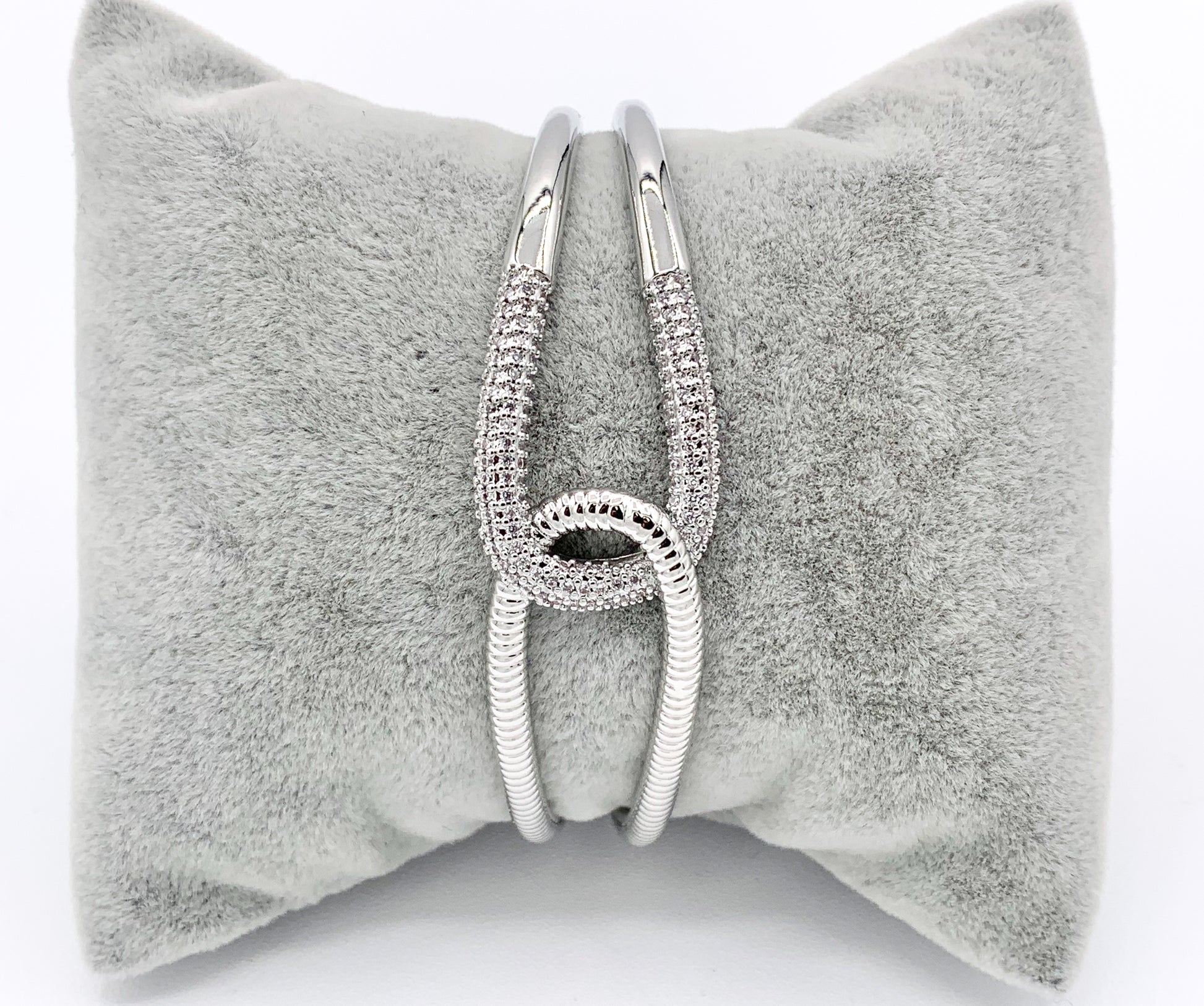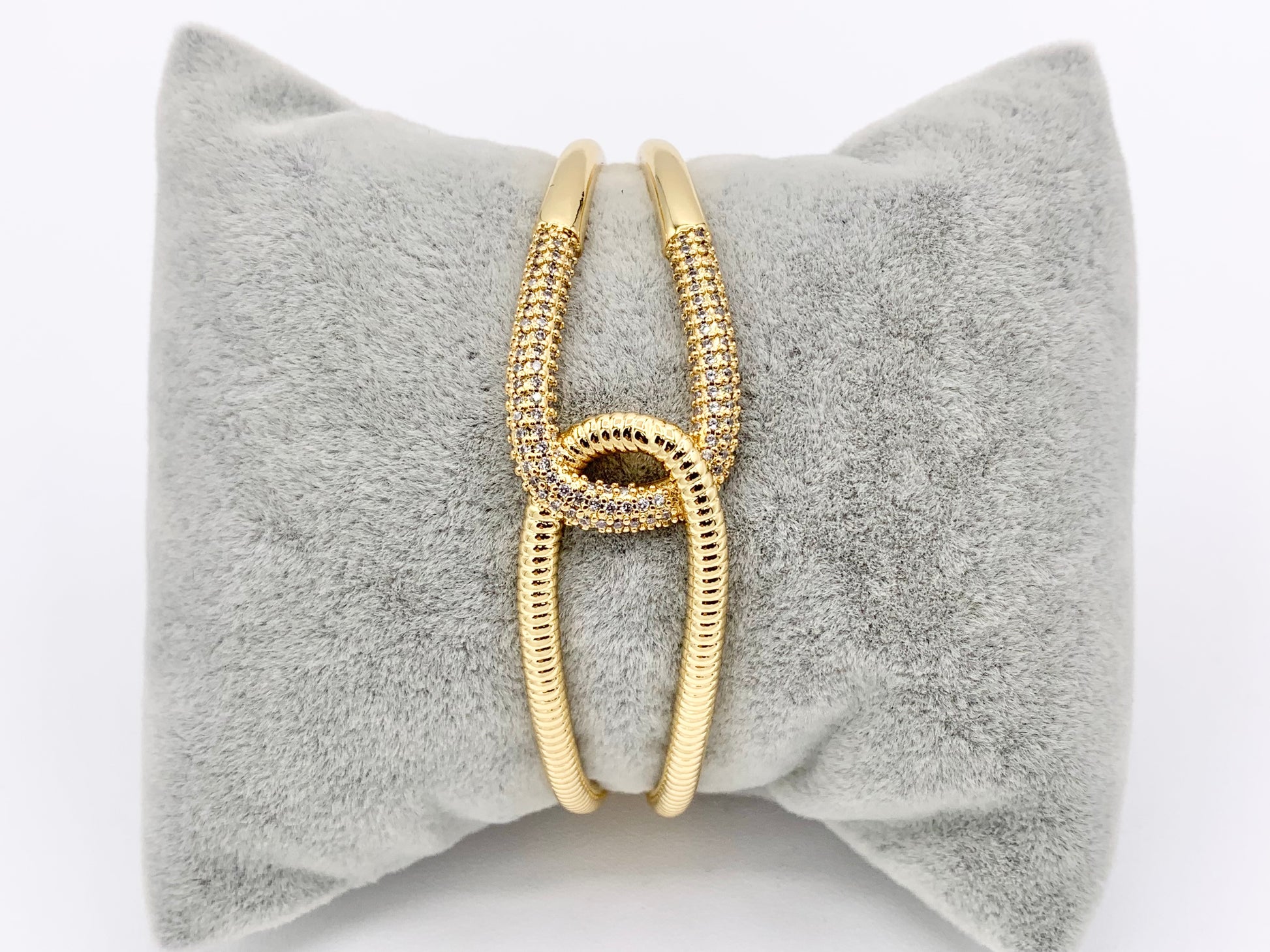 Hermosos puños de pulsera de doble capa entrelazados de eternidad en CZ Pave Rhinestones Cobre chapado en oro o plata de 18 quilates 1 pieza