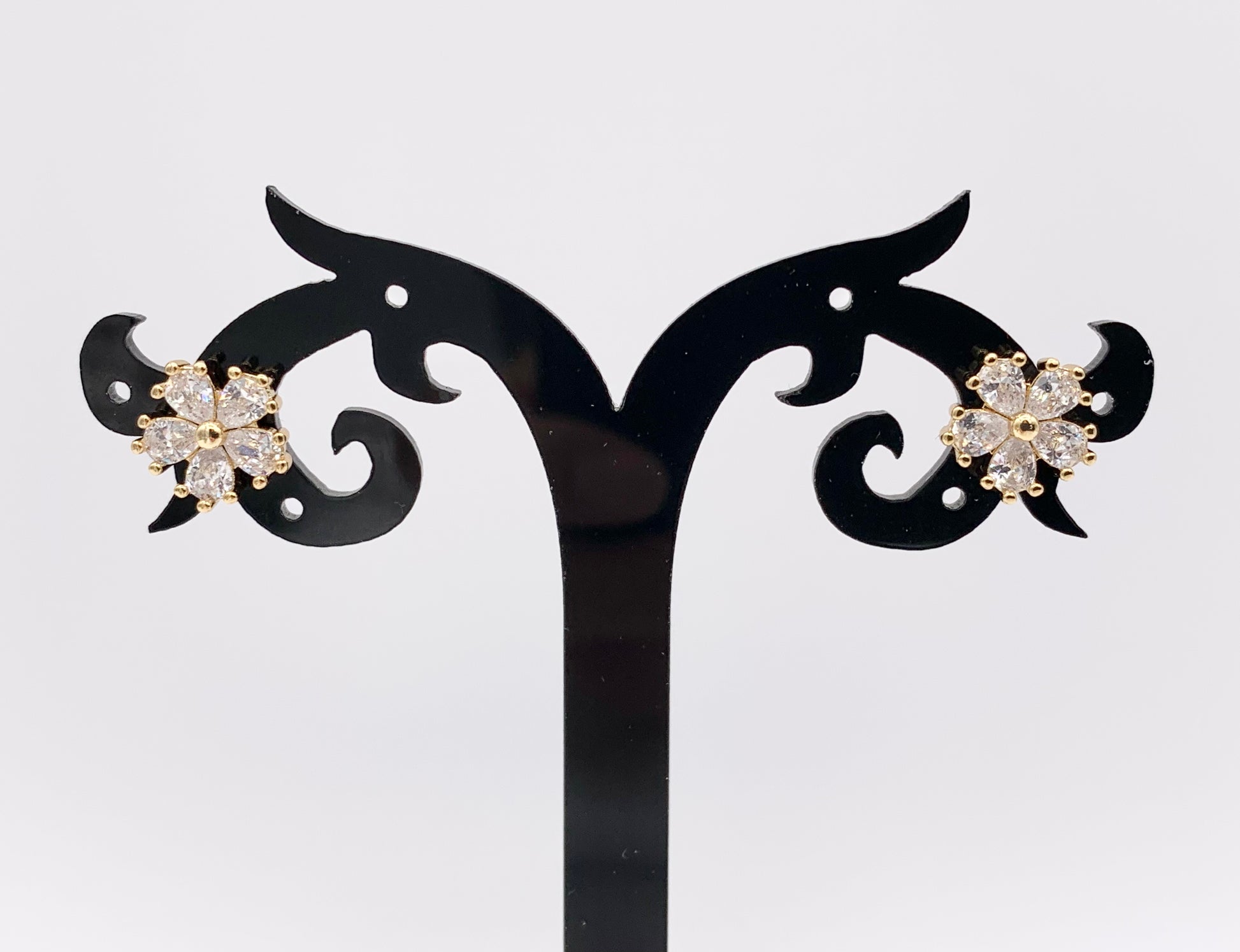Small Beautiful Rhinestone Flower CZ Pave Earring Studs in Gold 18K Plating over Copper