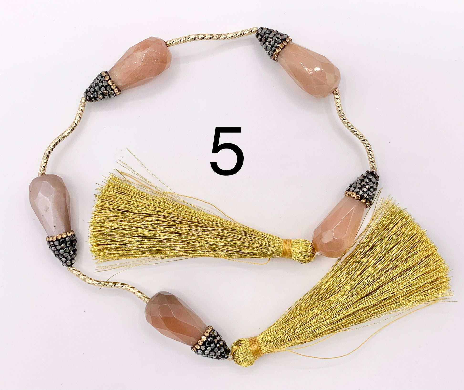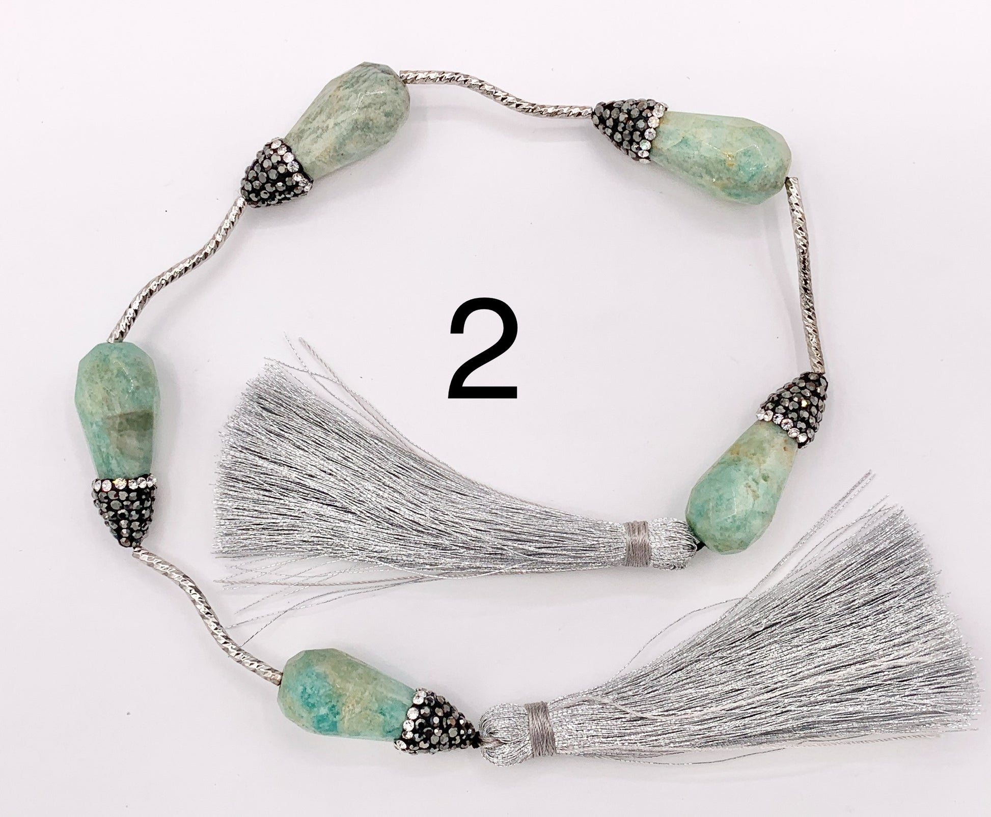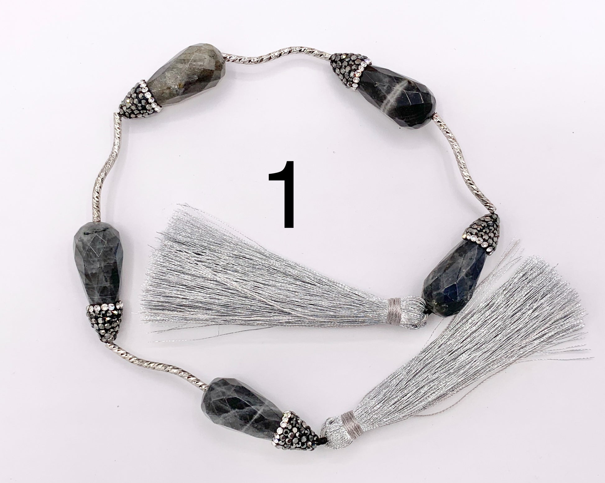 Beautiful Teardrop Stone Faceted Beads With Rhinestones Rose Quartz/ Pink Moonstone/ Lapis/ Peruvian Amazonite/ Labradorite Beads (1 Strand)