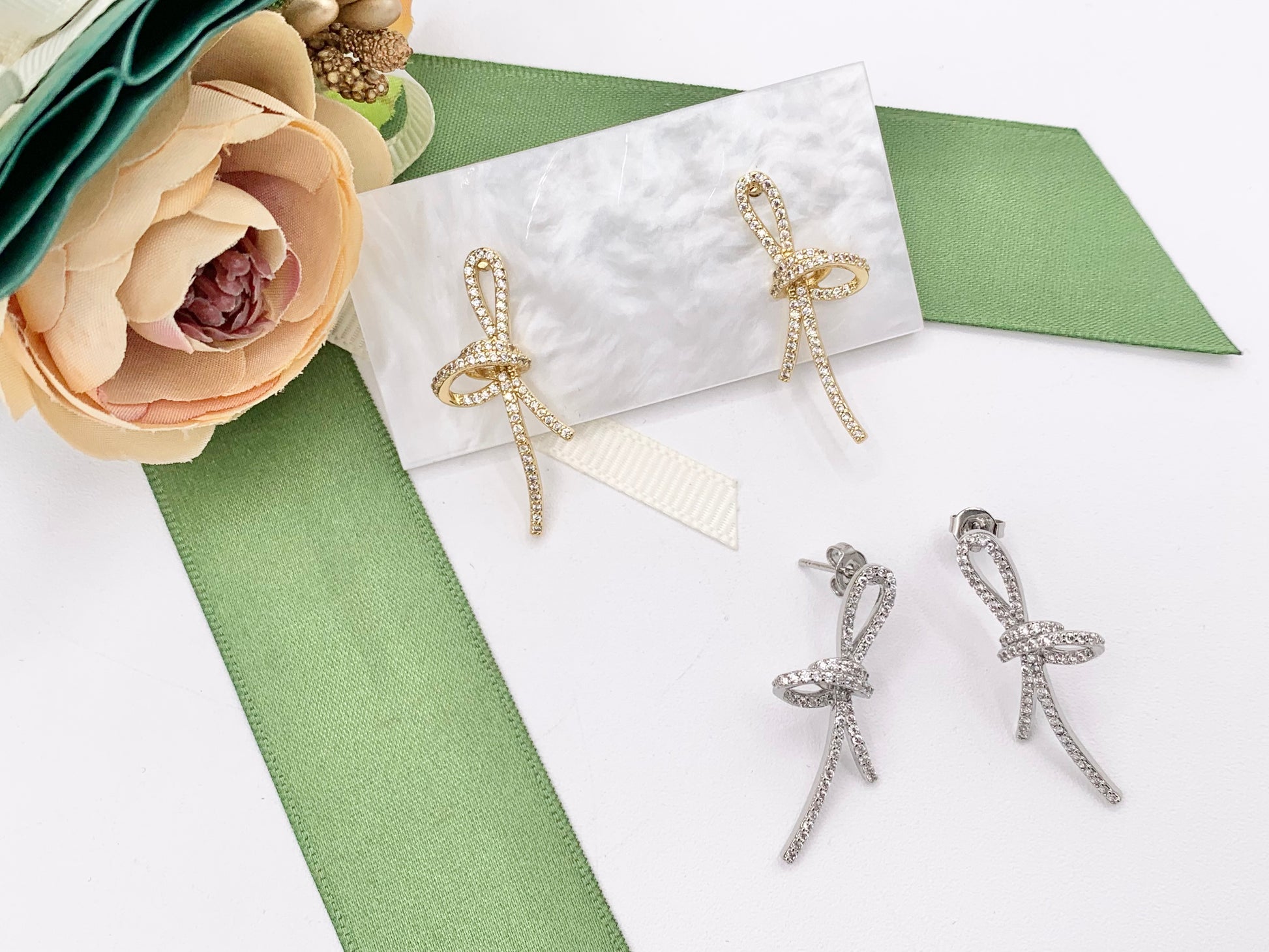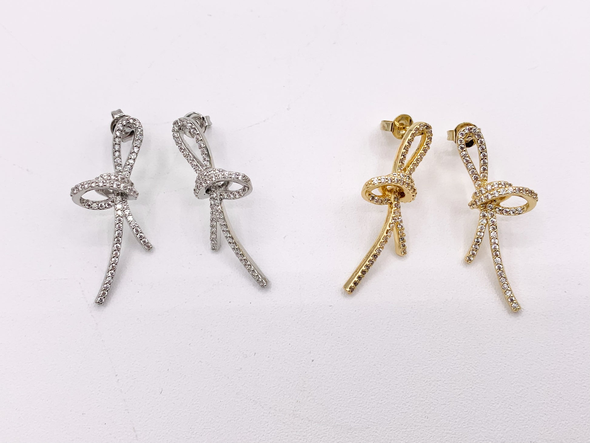 Beautiful Trendy Knot CZ Pave Earrings in 18k Gold and Silver Over Copper
