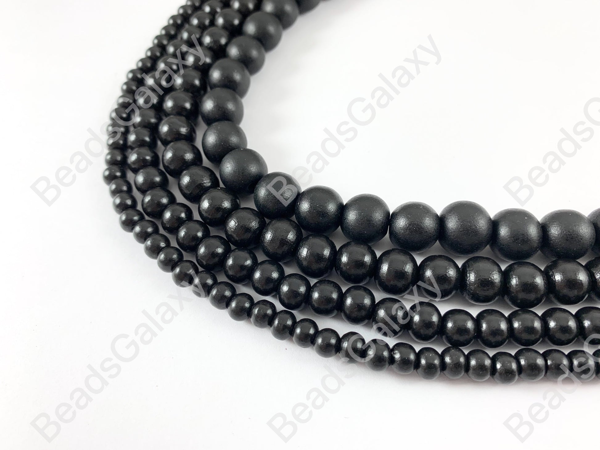 Cuentas de madera recubiertas de negro, cuentas naturales lisas redondas de 15"-16"