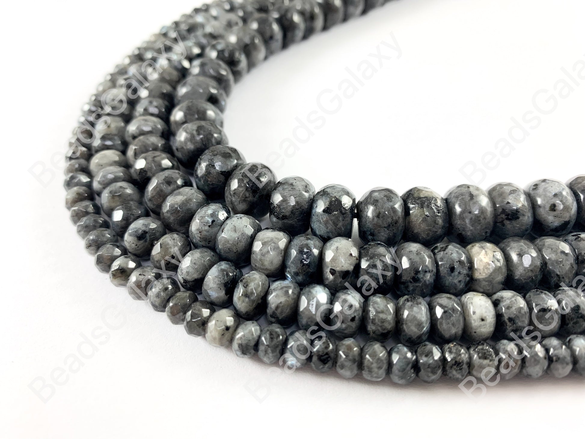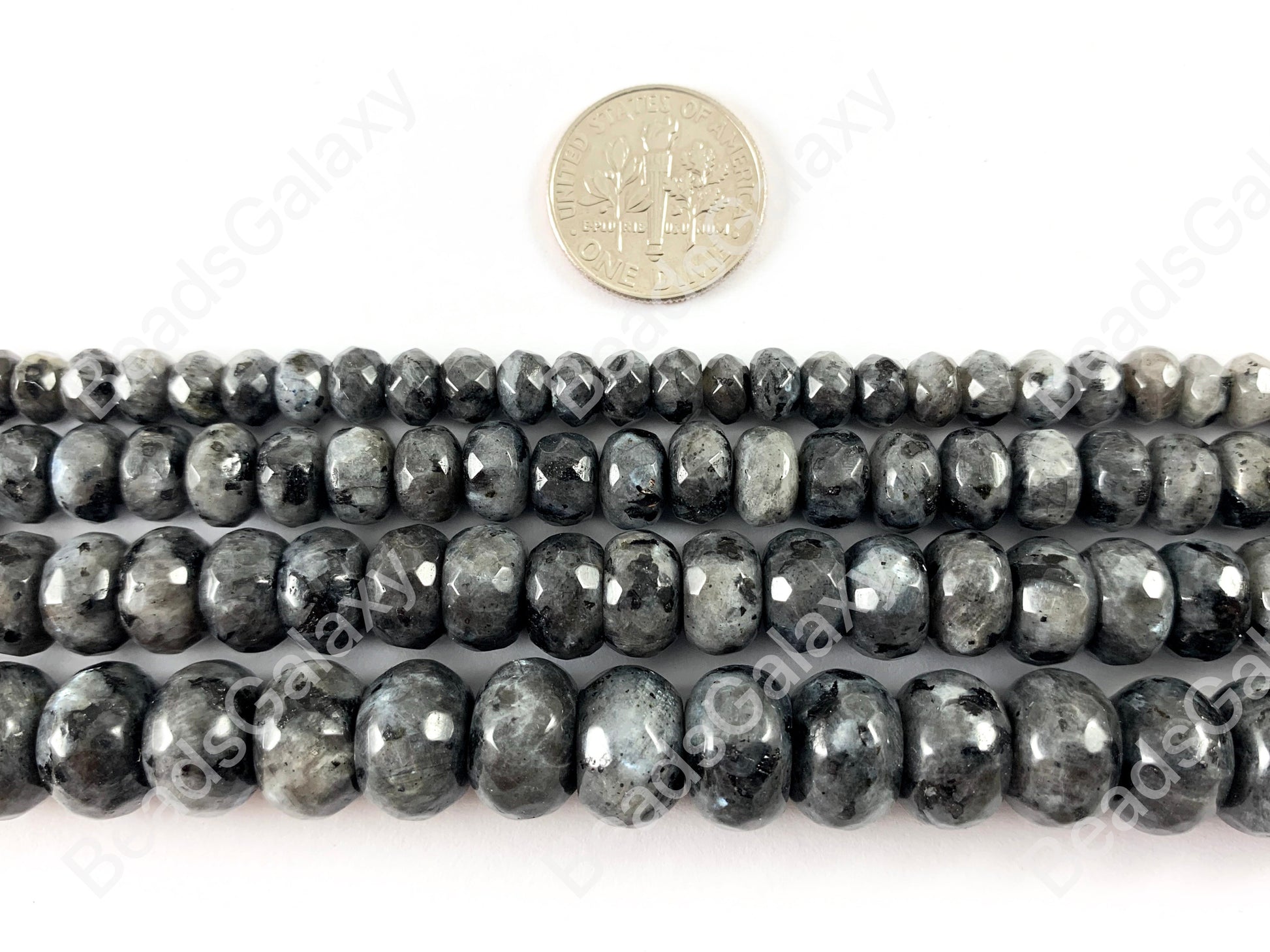 Labradorita negra Larvikita Rondelle Cuentas de piedras preciosas naturales facetadas para pulseras de hombres y mujeres de 6 a 12 mm disponibles alrededor de 14 a 15 pulgadas