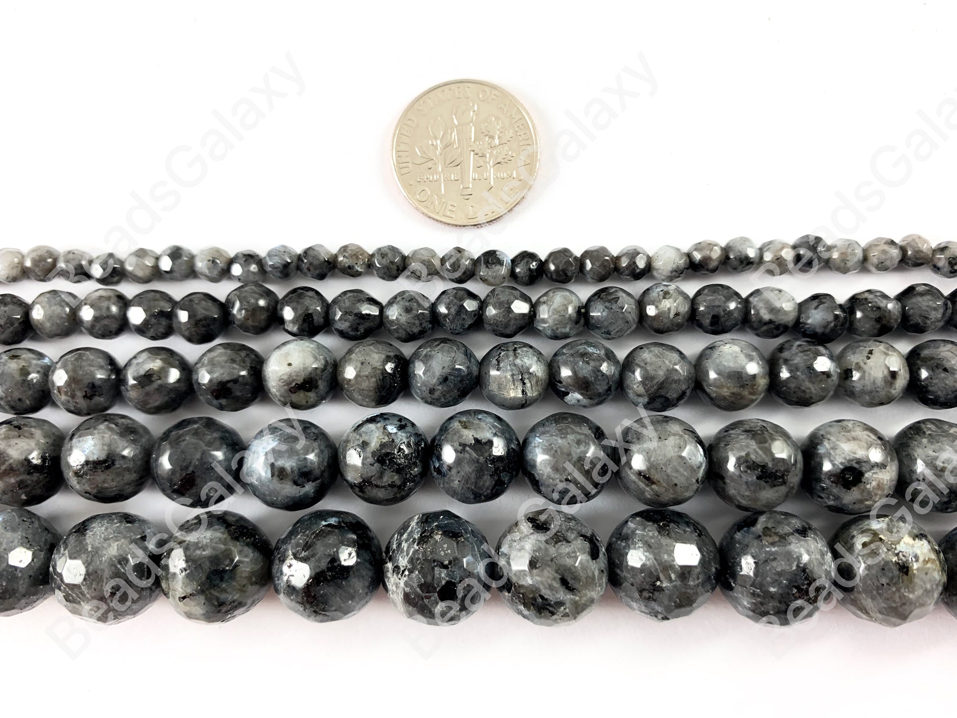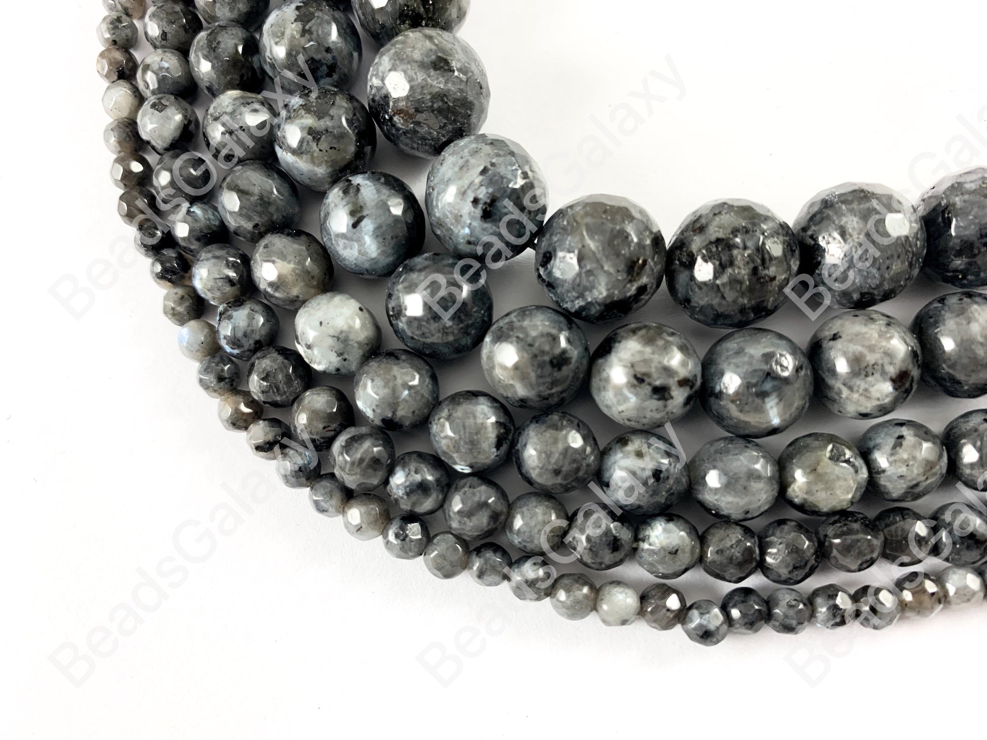Labradorita negra Larvikita Cuentas redondas de piedras preciosas naturales facetadas para pulseras de hombres y mujeres de 4 a 12 mm disponibles alrededor de 14 a 15 pulgadas