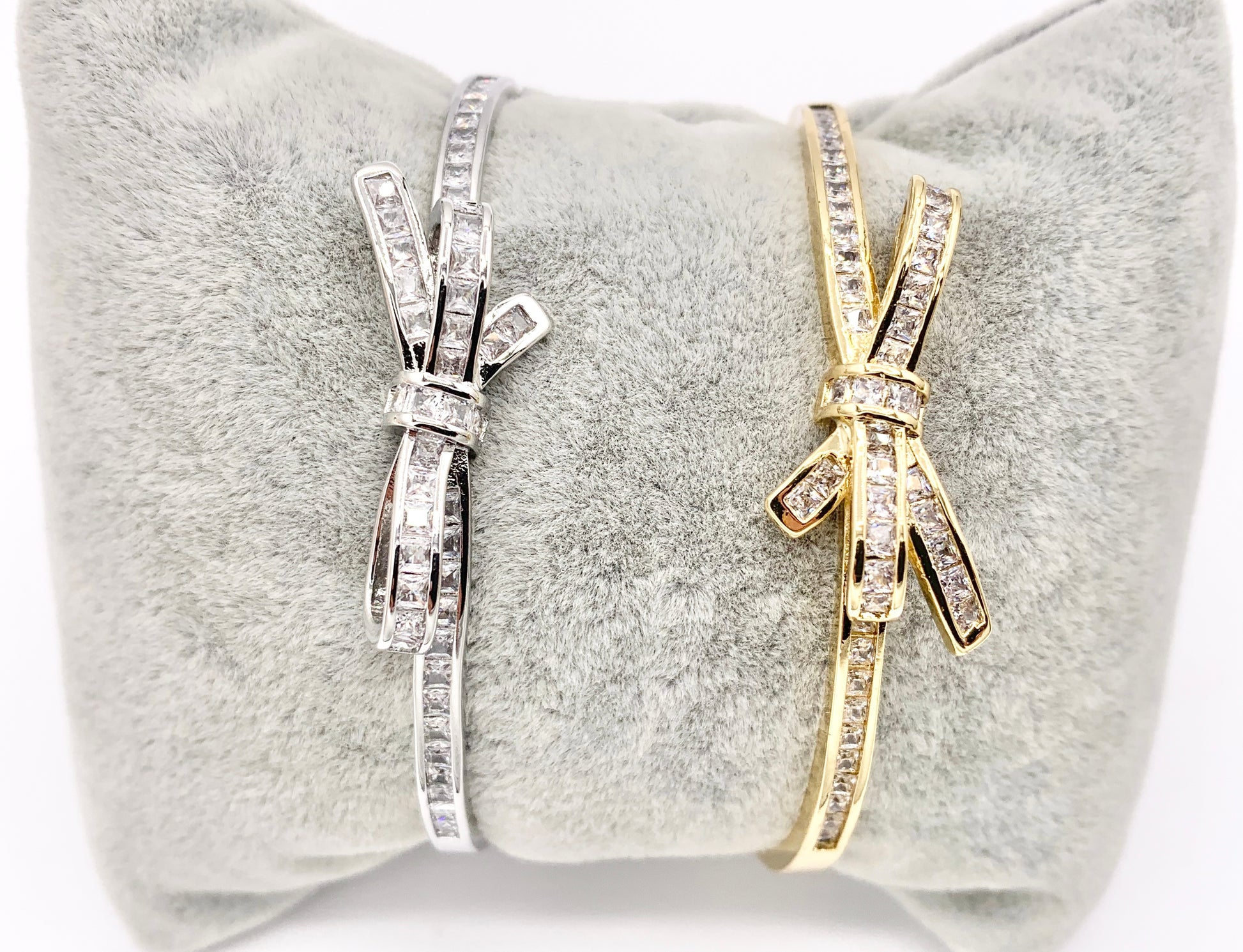 Bowtie Simple Minimal CZ Pave Bow Tie Rhinestone Bracelet Cuffs in Real Gold/Platinum 18K Plated Copper