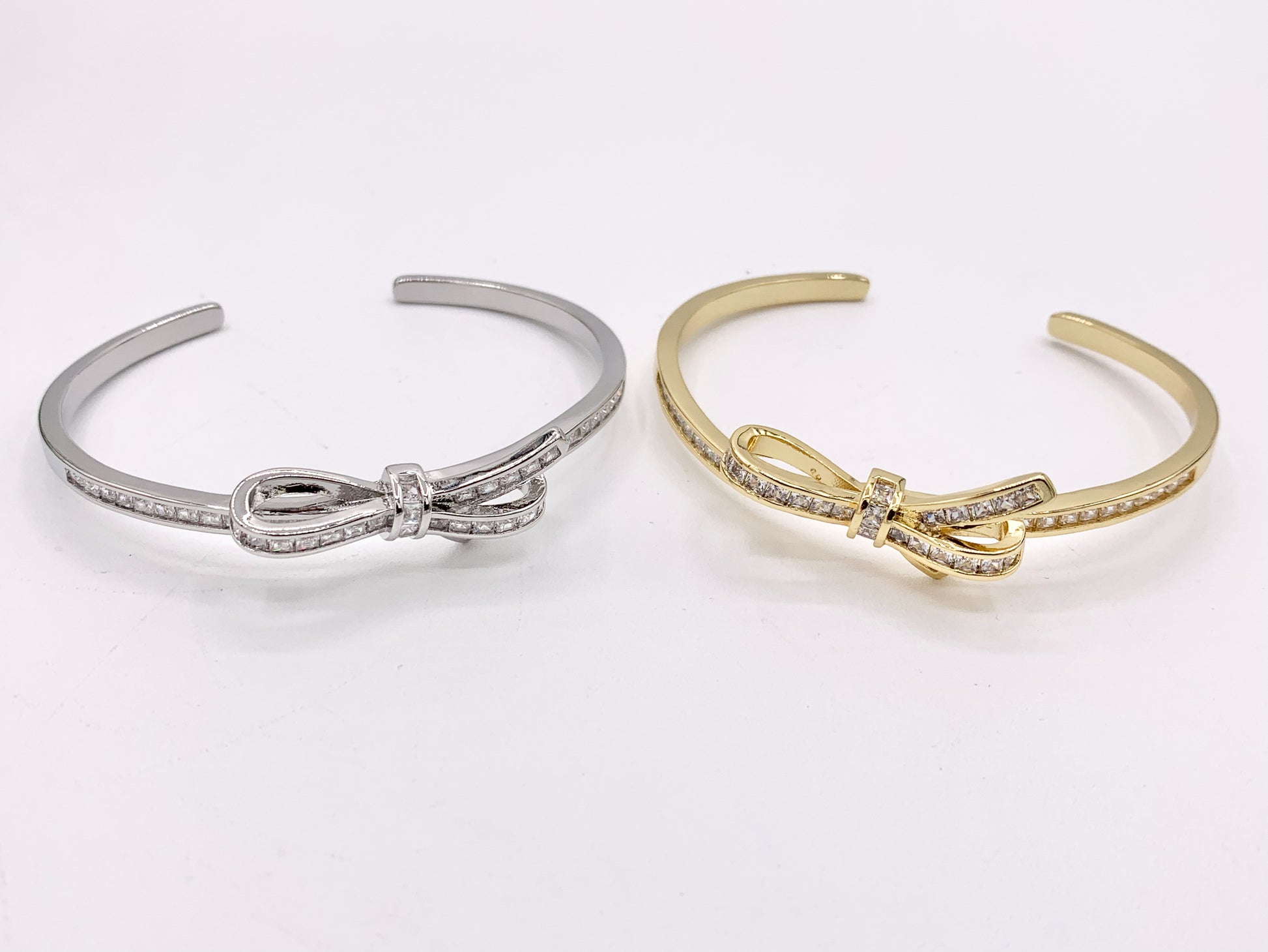 Bowtie Simple Minimal CZ Pave Bow Tie Rhinestone Bracelet Cuffs in Real Gold/Platinum 18K Plated Copper 1 pc