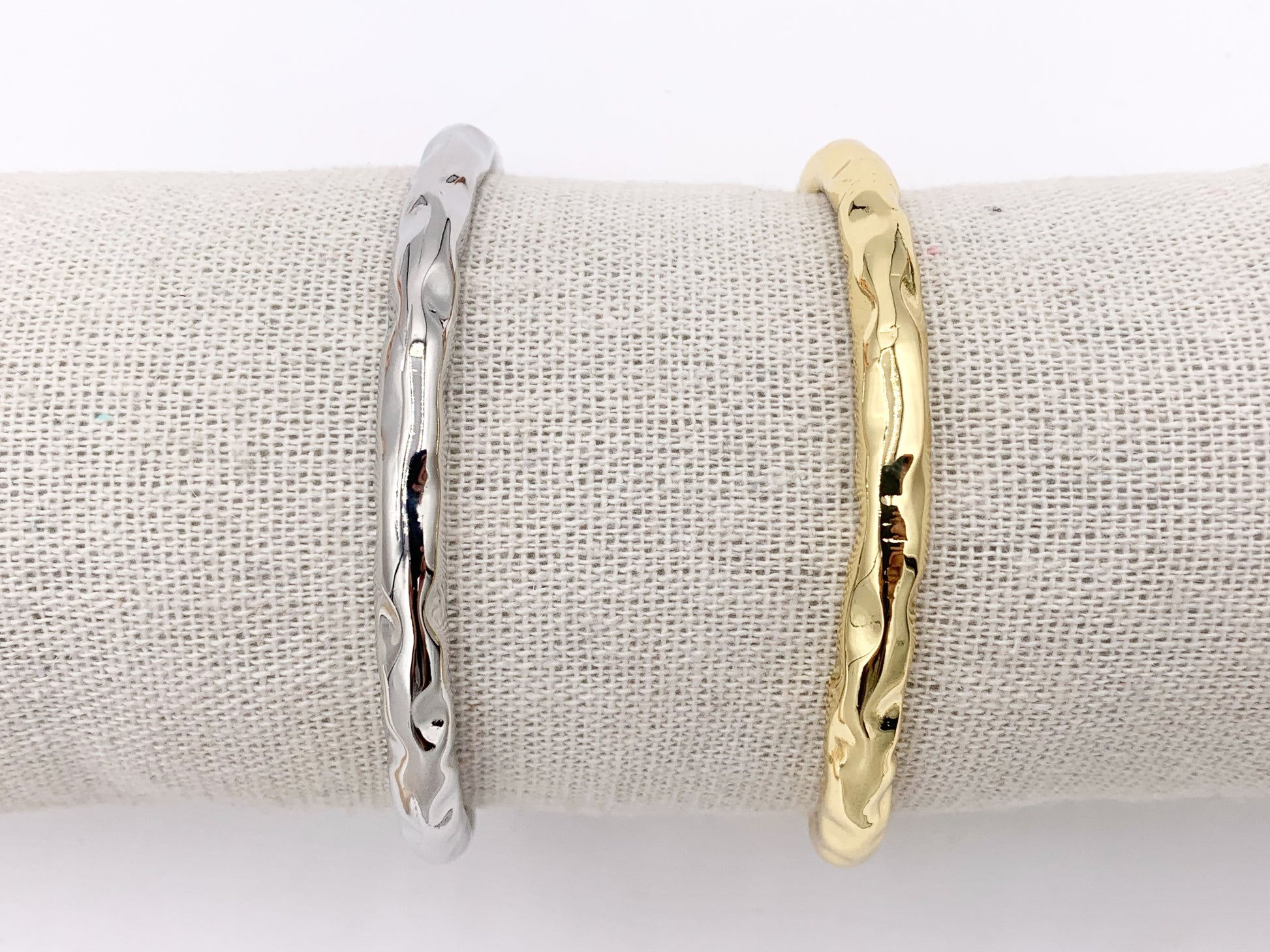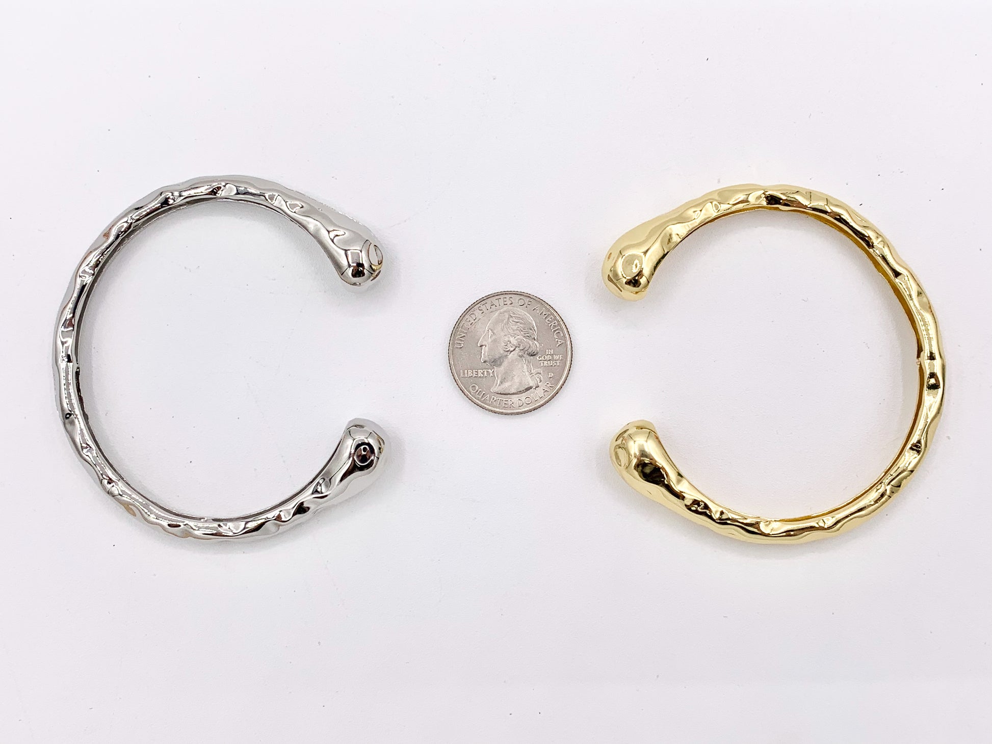 Chunky Organic Plain Adjustable Bracelet Front Open Cuffs in 18K Gold Plating or Silver Plating 2 pcs