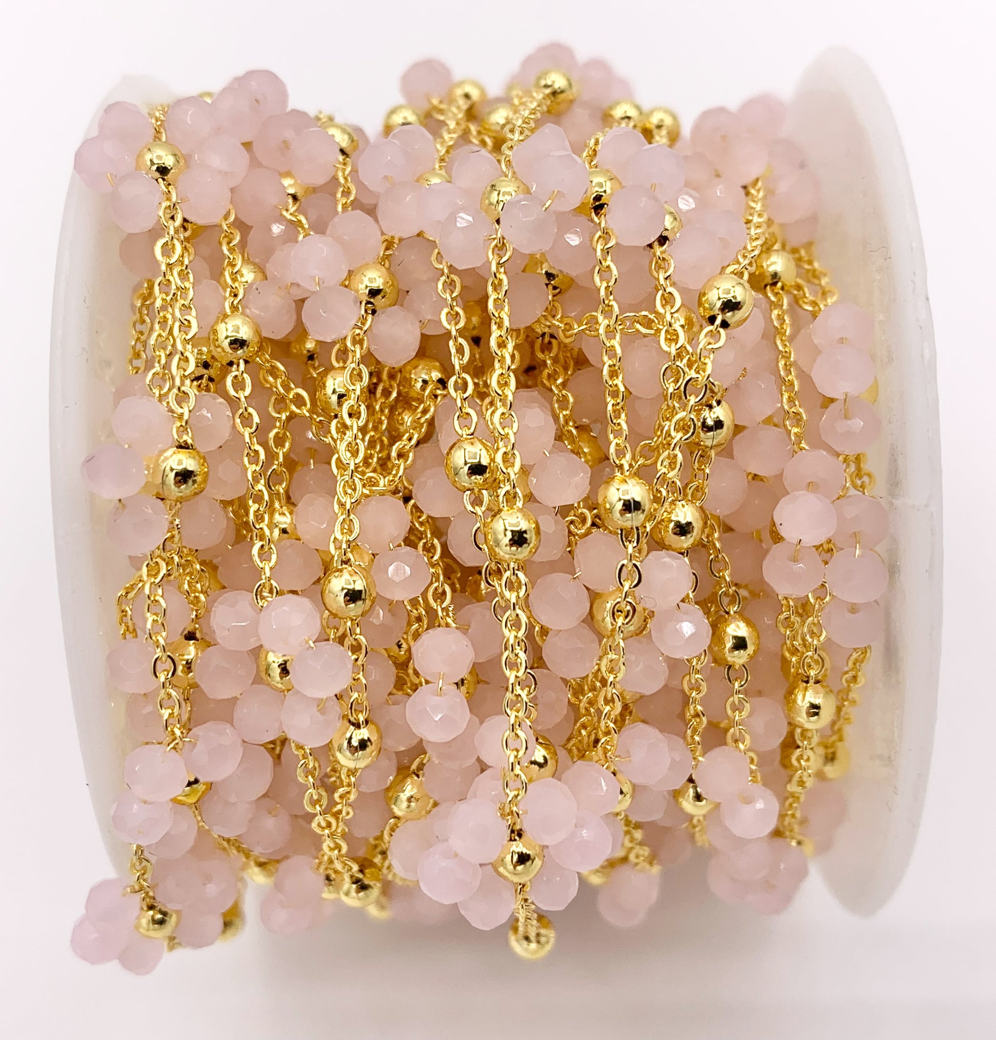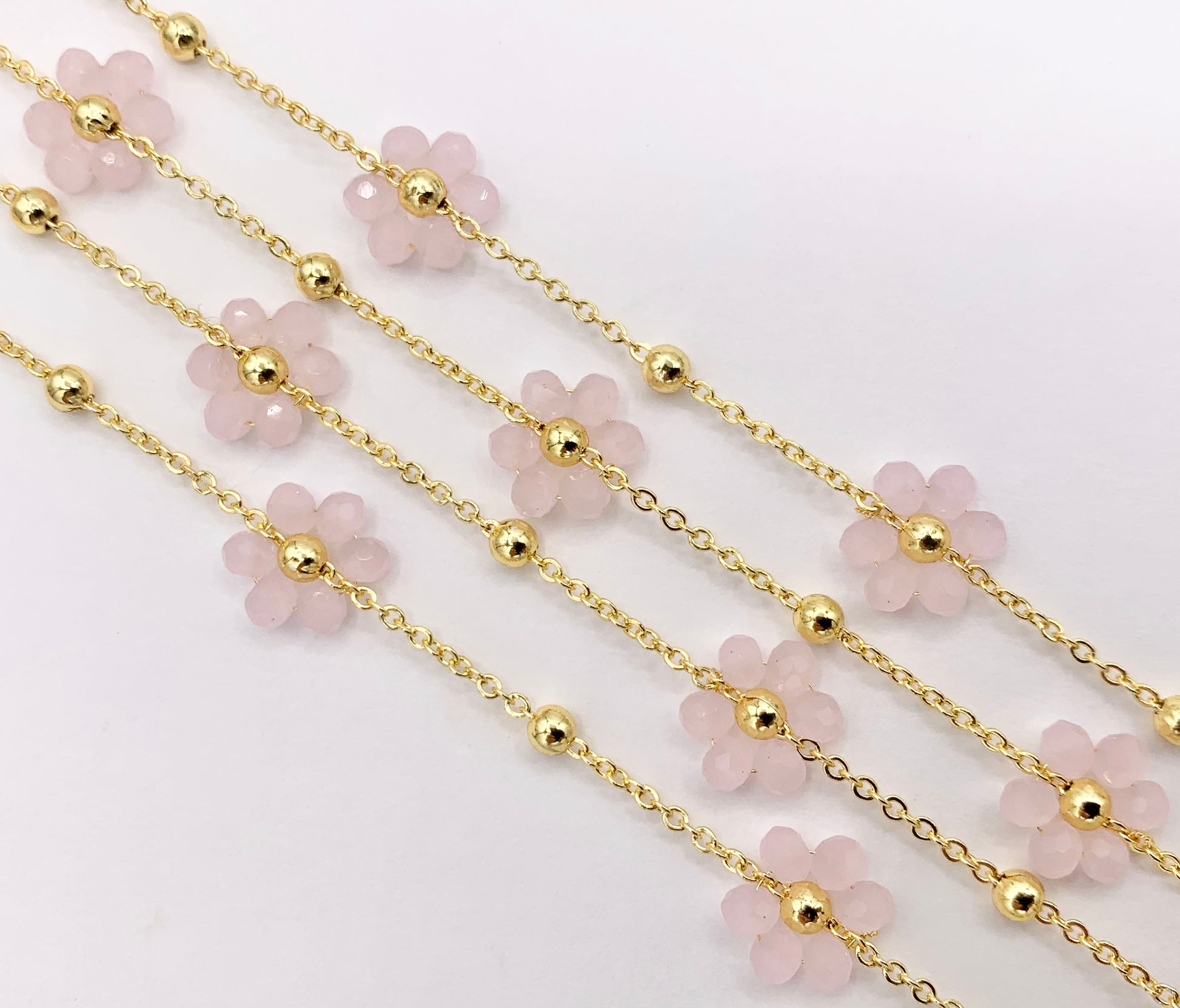 Colorful Crystal Beaded Daisy Flower Chain in 18K Gold Plated Copper By Spool For Jewelry Making