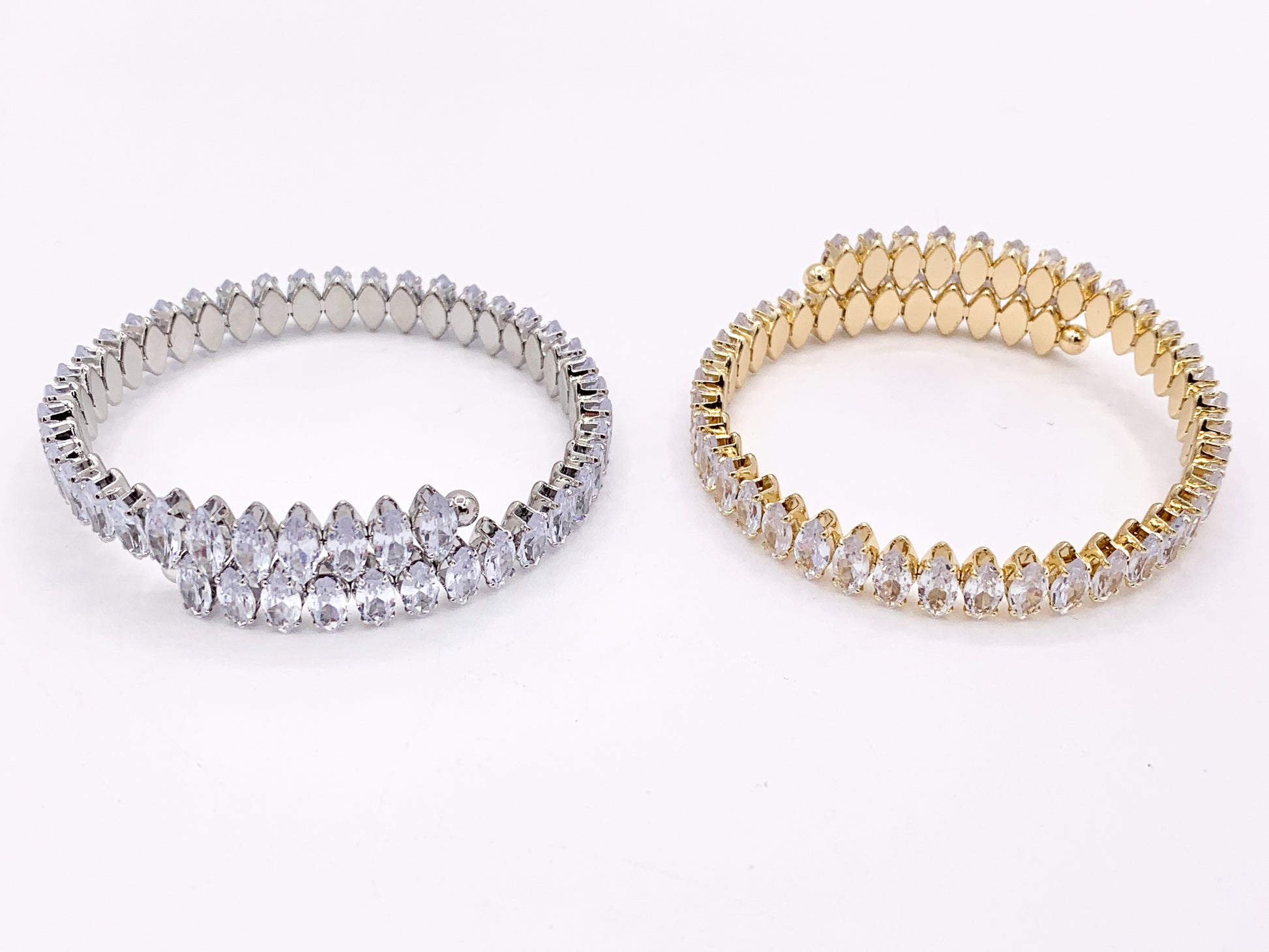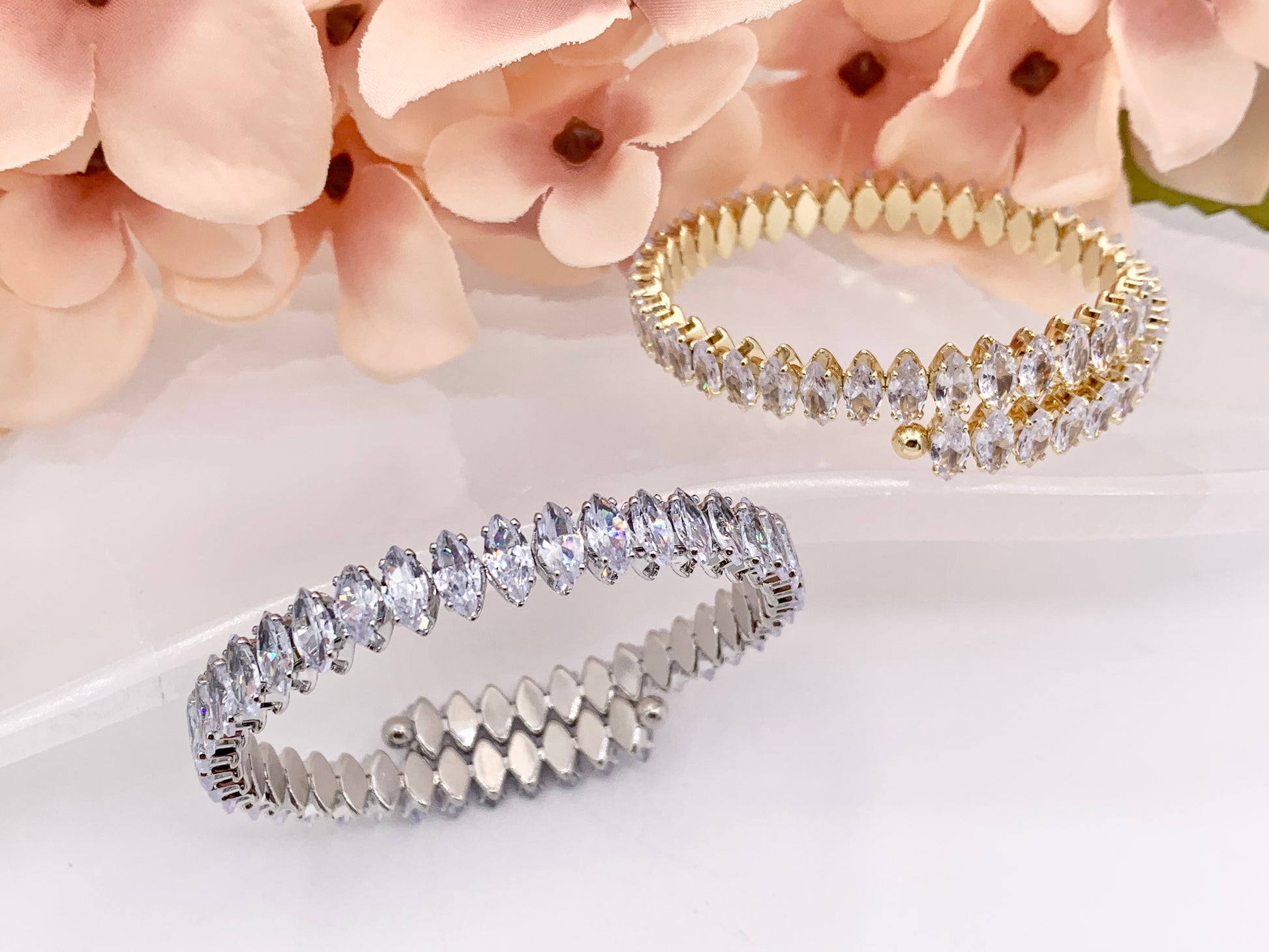 CZ Pave Cluster Rhinestone Baguette Fancy Flexible Bracelet Cuffs In Real Gold/Platinum 18K Plated Copper 3 PCS
