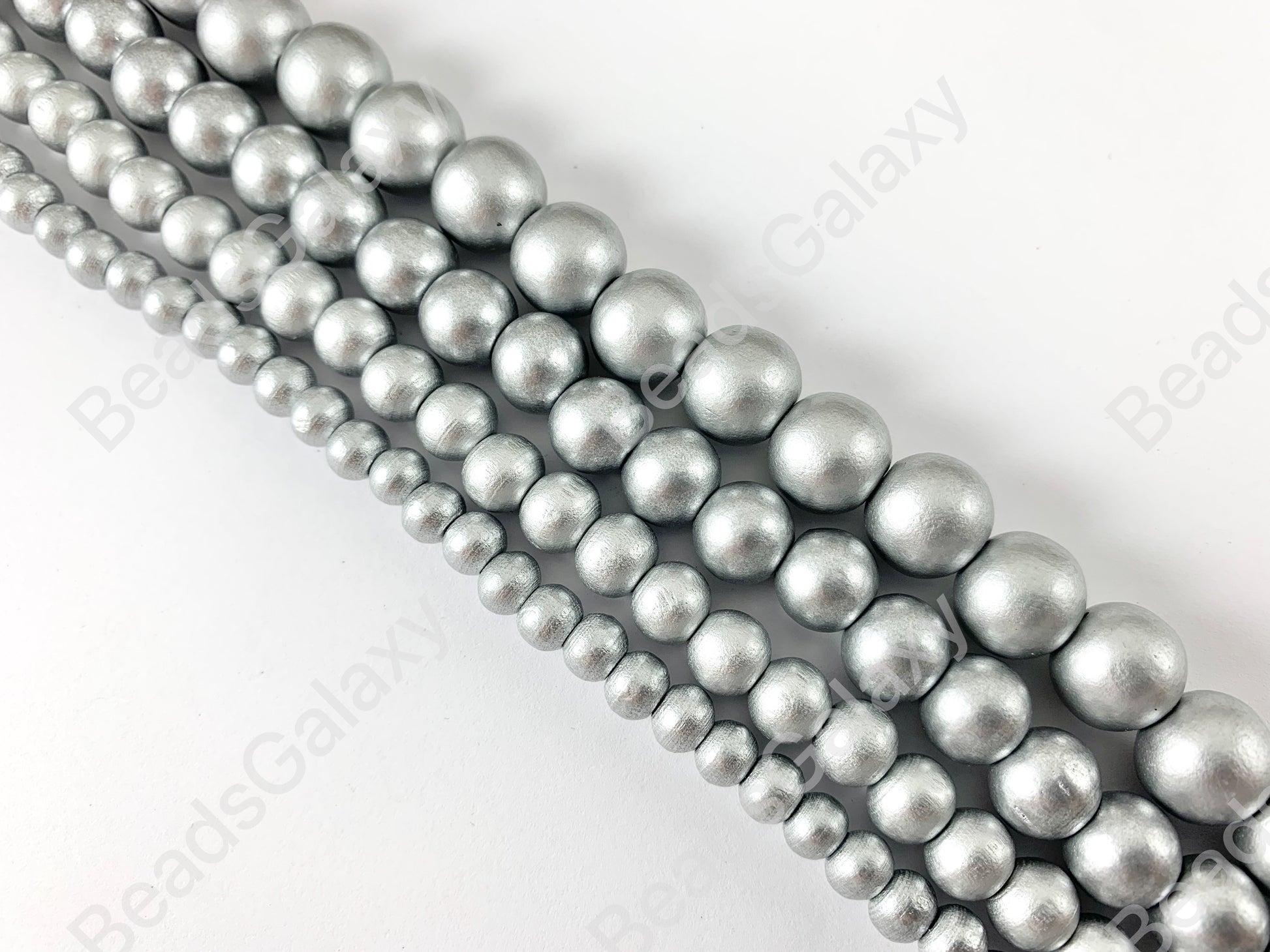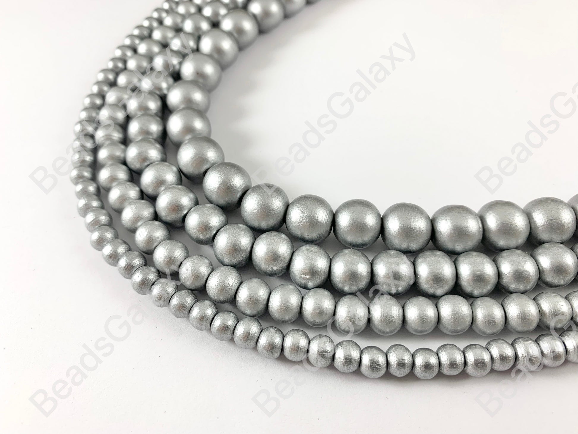 Cuentas de madera recubiertas de plata, cuentas naturales lisas redondas de 15"-16"